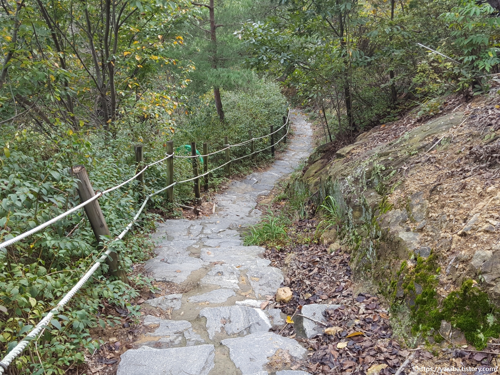 삼호산 태화강 전망대를 떠난 해파랑길은 경사도 급한 계단을 내려가며 고도를 급격히 낮춘다. 사실 1백여 미터의 동네 뒷동산에서 고도를 낮춘다는 표현이 어울리기나 하냐? 하는 비아냥이 들리는 것 같지만, 15Km가 넘는 길을 걸어온 저질 체력의 부부는 이 길도 엉금엉금 거의 기어 내려가다시피 한다. 젊은 시절 1미터 정도야 펑펑 뛰어내렸던 지리산 하산길의 추억은 애니메이션의 한 장면이었나 싶기도 하다. 다만, 길을 내려가며 드는 생각은 이 길을 내가 거꾸로 올라간다면, 악! 하는 비명을 지를 것 같은 상상이 된다.