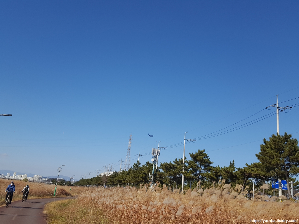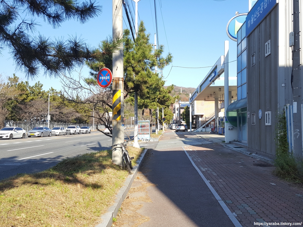 억새 군락지를 지나 아산로를 접어드는 지점에 이르니 하늘에서 비행기 소리가 들린다. 비행기 한대가 울산 북구에 있는 울산 공항으로의 착륙을 준비하고 있었다. 울산역 KTX가 생기면서 가장 큰 타격을 받은 것이 바로 울산 공항이라 한다. 여전히 코로나 시국이라 항공 업계의 어려움은 계속되고 있지만 코로나 직전에는 저가 항공 업계 덕분에 공항 수요의 상당 부분을 회복했었다고 한다. 울산 시민들의 입장에서도 저가 항공에서 국제선과의 화물 연계 서비스가 지원된다면 공항을 이용하는 것이 비용이나 편의성 면에서 매력적이지 않을 싶다.