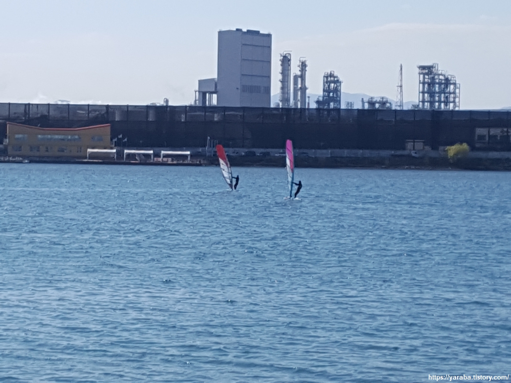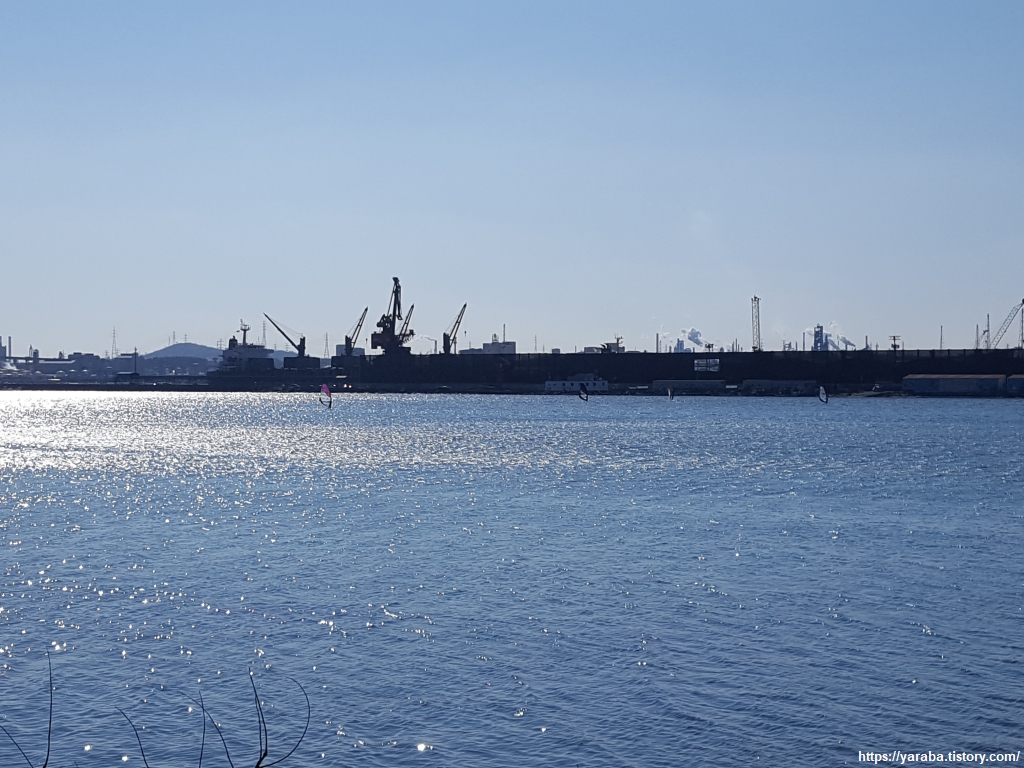 바다와 만나는 태화강 하류는 강폭이 600미터에 이르고 울산항 부근은 1.5Km에 이르는데 때마침 부는 바람을 맞으며 윈드서핑을 즐기는 사람들이 있었다. 강 건너편에 태화강 수상 레저 계류장이 있어서 윈드서핑, 카누, 조정, 고무보트 등의 수상 활동을 할 수 있다고 한다. 바람이 세차게 불고 파도가 넘실대는 해수욕장에서 타는 서핑의 맛도 있겠지만 바다와 민물이 섞이는 잔잔한 강 하구에서 서핑을 배우는 것도 괜찮다 싶었다. 거대한 산업단지 사이로 흐르는 강 하구에서 부담 없이 서핑을 즐길 수 있다는 것 하나만으로도 태화강의 기적에 동의할 수 있겠다 싶다. 그 누가 이 강이 20년 전 악취가 풍기고 숭어가 떼죽음을 당하는 죽음의 강이었다 상상을 할 수 있겠는가? 오랜 시간 태화강이 살아있는 생태 하천으로 남아 주기를 바라본다.