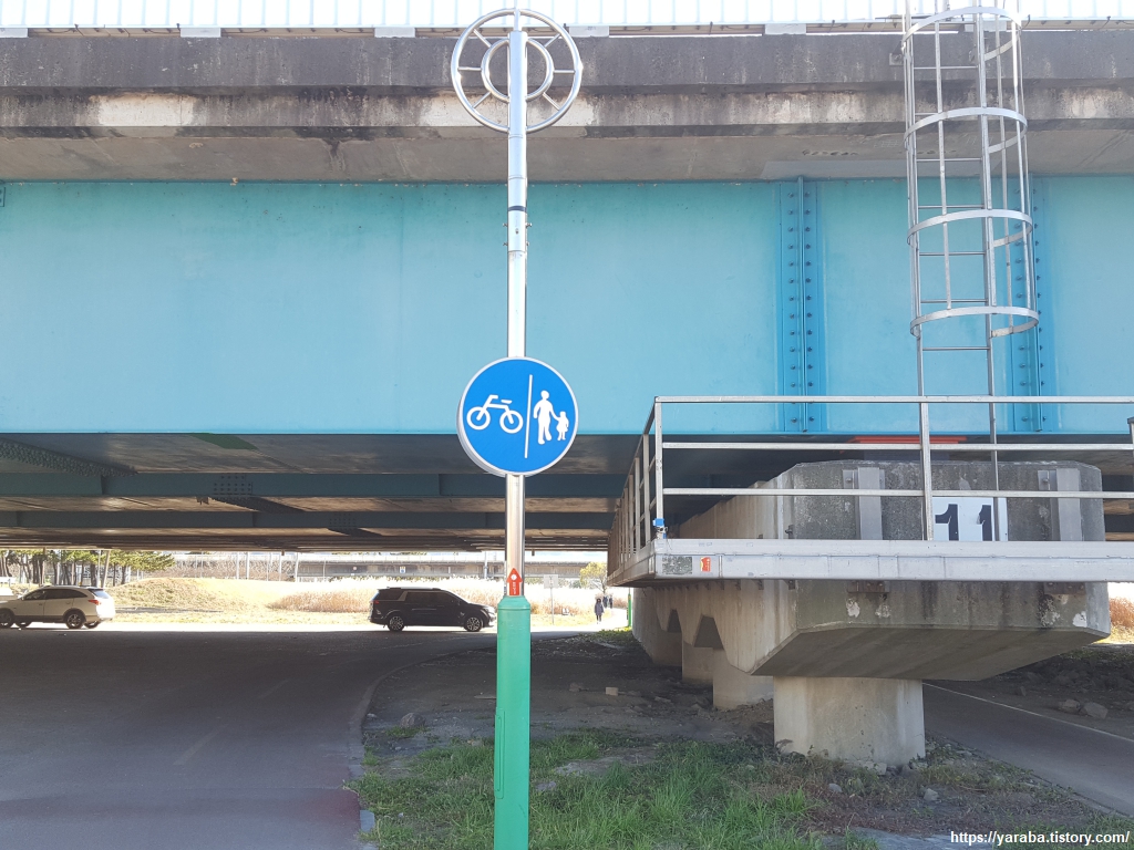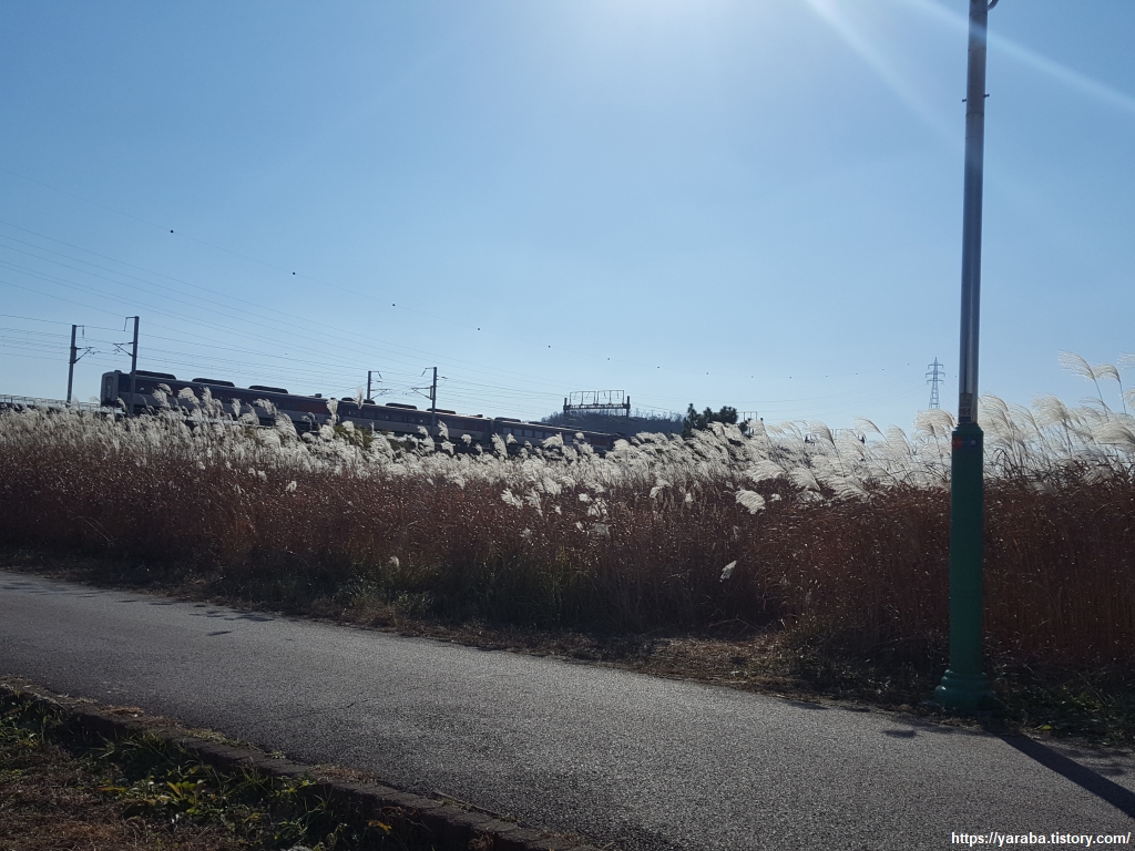 명촌대교 바로 옆에는 동해선 철교가 나란히 지나고 있는데 때마침 태화강 역으로 향하는 기차가 있었다. 강을 건너면 태화강역이 있고 그 다음 역이 6코스의 기점인 덕하역이다. 부산에서 시작하는 동해선 광역 전철이 올해 태화강역까지 연결된 예정이고 이후에는 북울산역까지 연장될 예정이다.