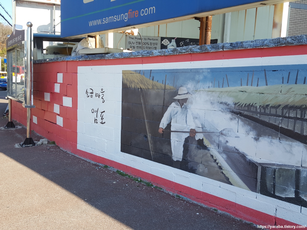소금밭이 많았다고 해서 염포라 이름이 붙은 이곳은 지금이야 산업단지로 둘러싸여 있지만 예전만 해도 소금과 항구로 유명했던 곳이다. 세종 당시 삼포 개항이라 해서 부산포, 진해 내이포, 울산 염포를 국제 무역항으로 개항하는데 그 주인공의 하나가 바로 염포다. 삼포 왜란 이후에는 국제 무역항의 지위를 잃었지만 해방 당시만 해도 어업으로 번창하는 마을이었다고 한다. 1960년대까지만 해도 울산이 우리나라 동해안의 최대 소금 산지였다는 것이 실감 나지 않지만 울산만의 천혜의 자연조건과 넓은 산지에서 나오는 풍부한 땔감은 벽화에서처럼 끓여서 만드는 자염을 생산하는데 최적이었겠다 싶다. 천일염은 바닷물을 염전에 끌어들이고 햇빛에 증발시켜 얻지만 의외로 우리 민족이 소금을 얻는데 이 방법을 사용하기 시작한 것은 1백여 년에 지나지 않는다고 한다. 그 이전에는 모두 자염 법에 의해 소금을 만들었다는 것이다. 자염을 만드는 과정은 염도를 최대한으로 끌어올린 함토를 만드는 과정으로 시작하는데 갯벌 흙을 부수고 햇빛에 말리고 바닷물을 먹이고 하는 과정을 반복해야 하는데 울산이 이 작업을 용이하게 할 수 있는 조건이었다는 것이다. 함토가 만들어지면 여기에 바닷물을 붓고 졸이듯이 끓이며 거품을 걷어 내는 것으로 하얀 소금을 만들었다고 한다. 고된 작업이지만 부드러운 짠맛에 미네랄도 풍부하다고 한다. 물론 가격은 비쌀 수밖에 없다.