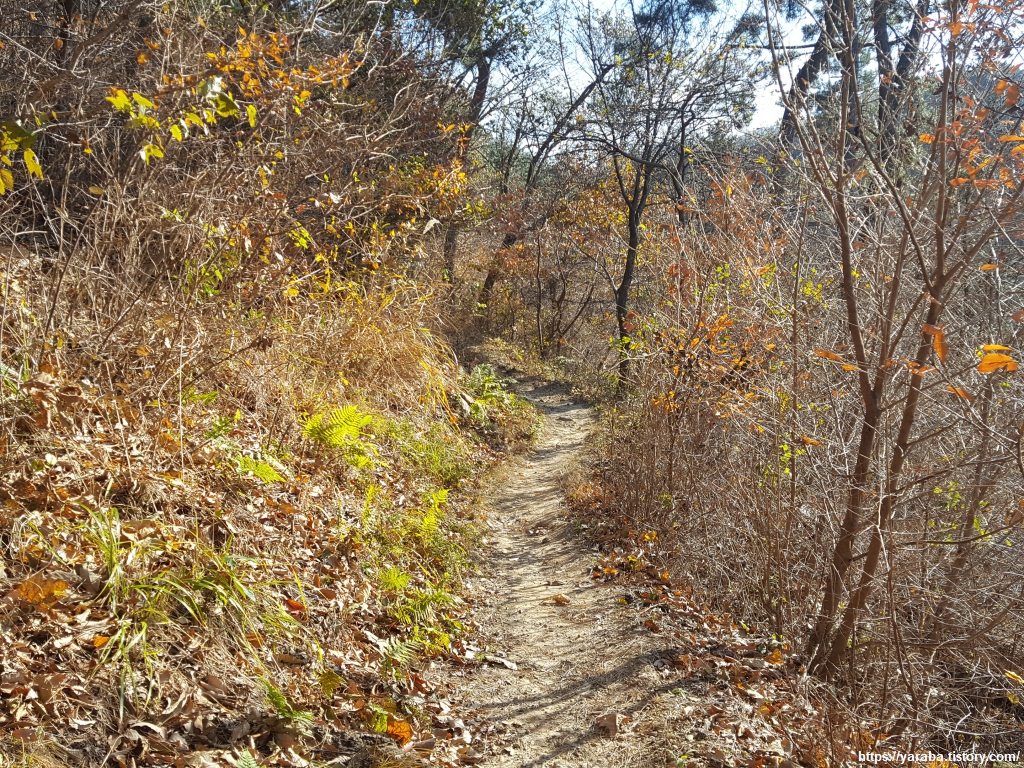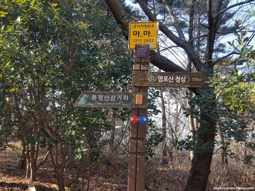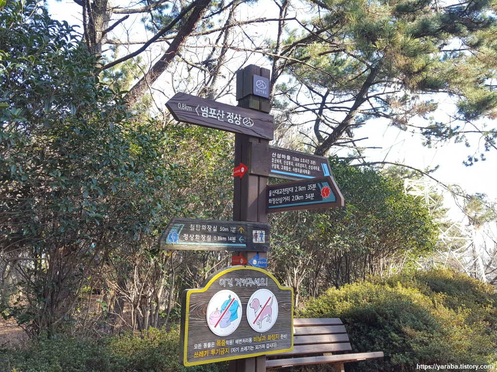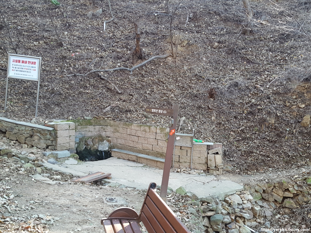 길은 비소 초과 검출로 폐쇄된 약수터를 만나는데 이곳에서 염포산 정상으로 가지 않고 우측의 오솔길을 통해서 길을 이어간다.