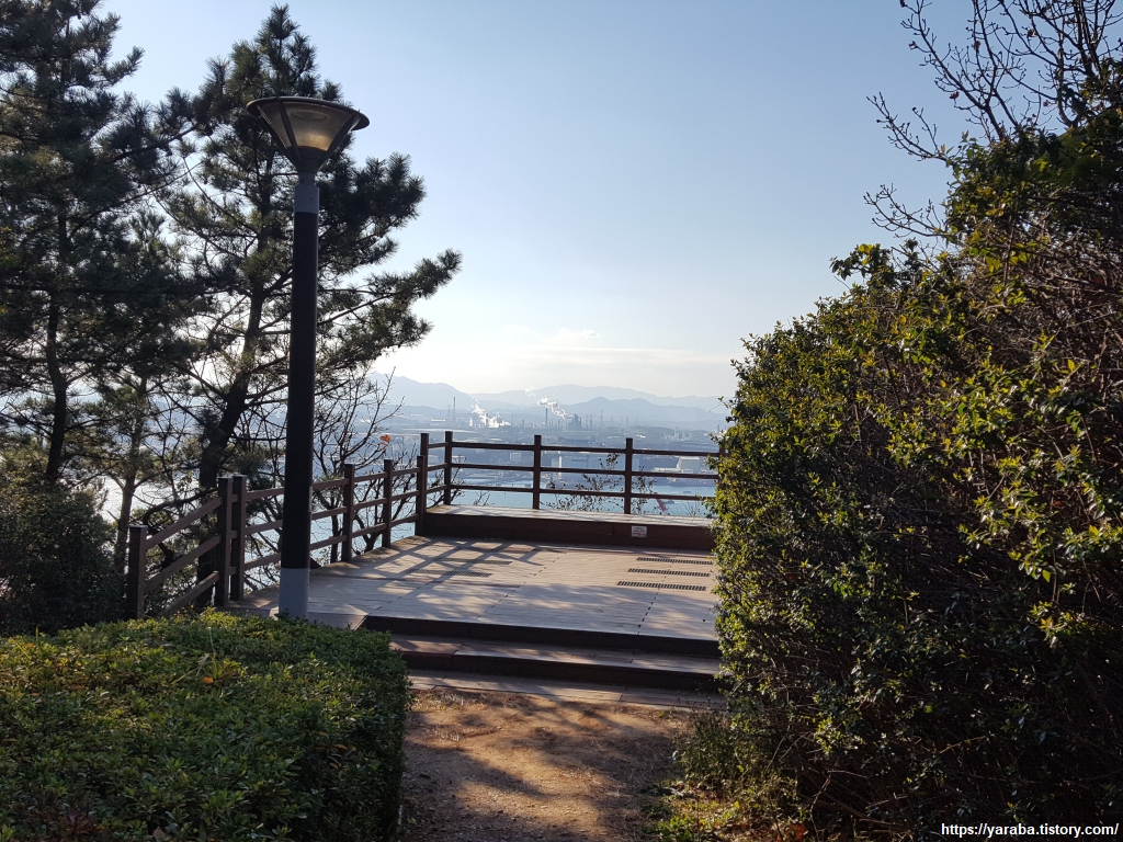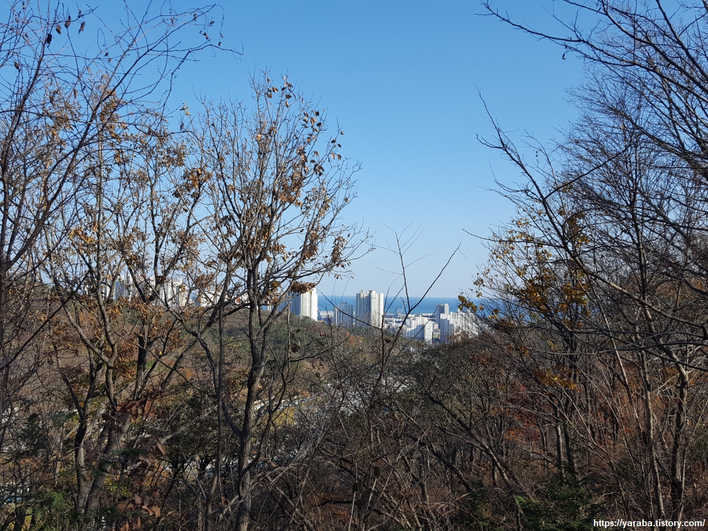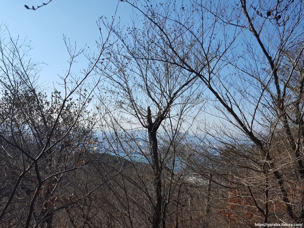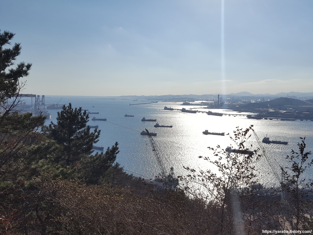 염포산의 해안 쪽 능선을 걷는 길은 따스한 햇살 때문인지 걸음도 상쾌하고 드문드문 해안 쪽 풍경이 눈에 들어오기도 한다.