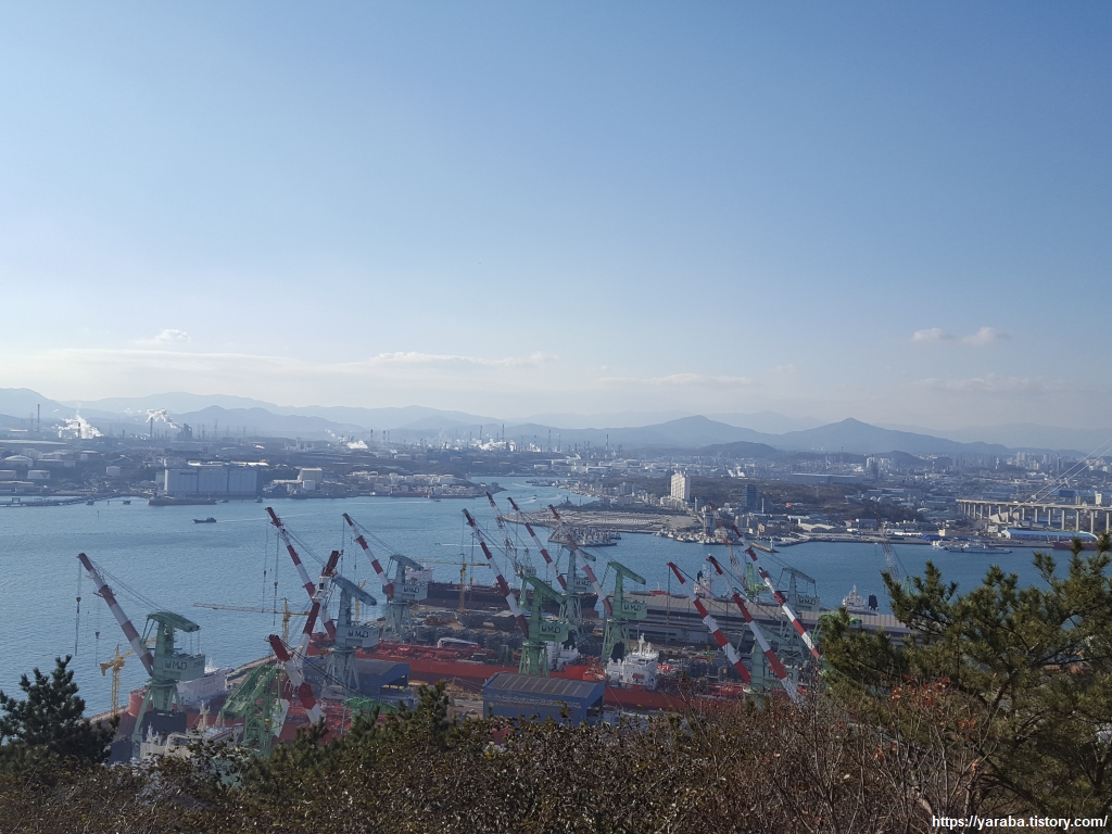바로 앞 현대 중공업 공장과 건너편의 산업단지들의 모습.