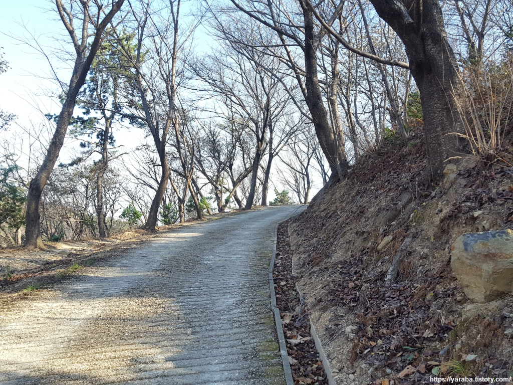 주 능선에 오르면 넓은 길을 통해 길을 갈 수 있다. 많은 분들이 울산대교 전망대 주차장에 차를 세워두고 염포산까지 산책을 하거나 울산 동구청 쪽이나 방어진 항 쪽에서 올라와 산책하시는 분들이 많았다.
