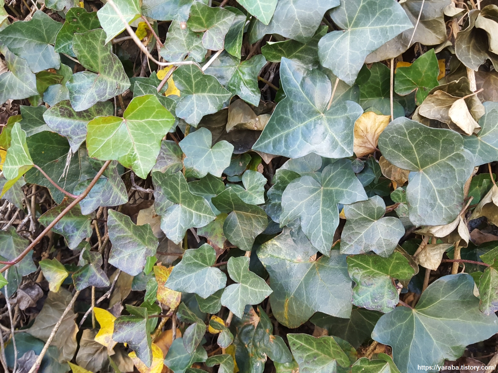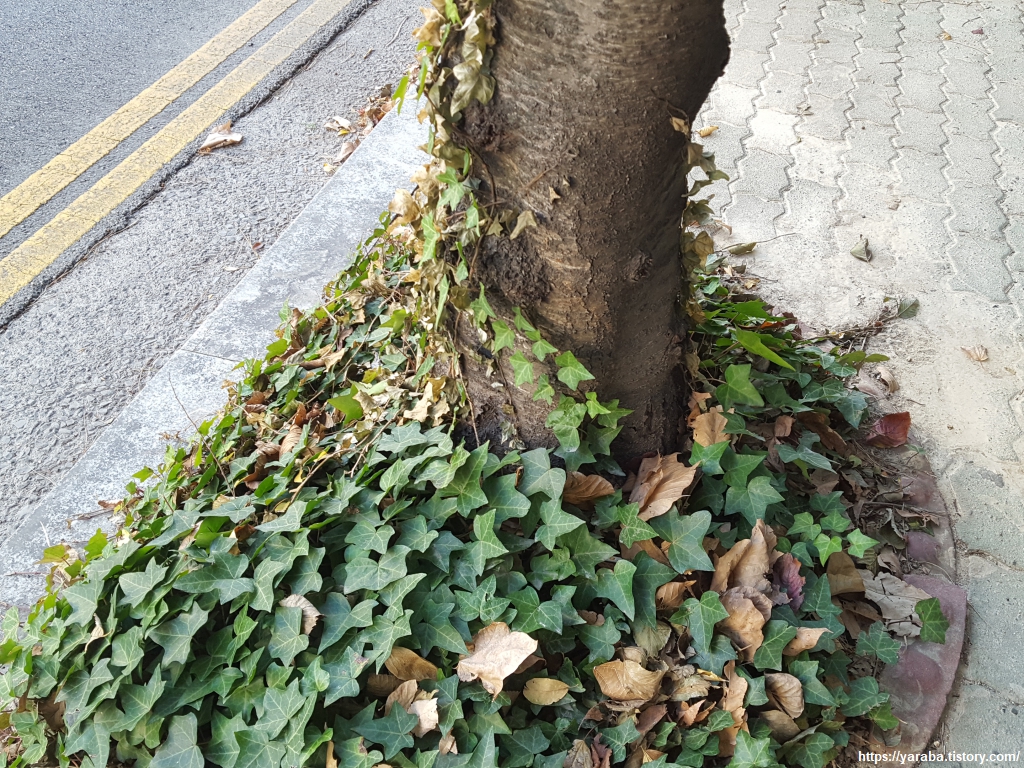 길을 걸으며 들었던 생각은 덩굴 식물들로 인해서 도시가 푸르게 녹화되는 것은 좋은데 담쟁이가 건물 벽면을 타고 올라가면 건물이나 벽에 손상을 입히는 것은 아닐까? 하는 궁금증이었다. 그렇지만 담쟁이나 송악이 벽을 타기 위해 흡착하는 과정에서 구조물에 손상을 입힐 정도로 파고들 수도 없을 뿐만 아니라 오히려 산성비와 자외선을 차단시켜서 내구성을 높여주는 효과가 있다고 한다. 건물을 담쟁이가 둘러싼 경우 여름철 온도를 낮추는 효과도 있다. 다만, 약한 구조물의 경우에는 덩굴이 틈 사이로 들어가면서 구조물에 손상을 가할 수도 있다.