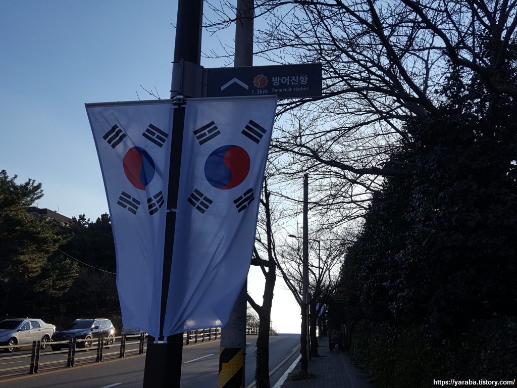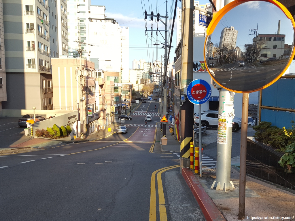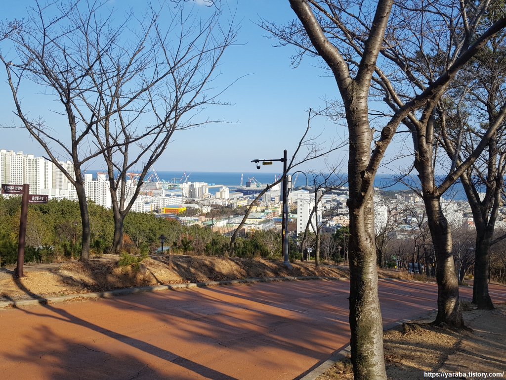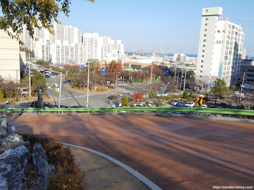길을 씩씩하게 내려갈 때만 해도 아무런 생각을 하지 못했다. 전망대까지 가는 시내버스도 있네! 전망대를 닫았는데도 이곳을 찾는 사람들이 많네! 하며 아무 생각 없이 걸어 내려갔다. 울산 동구청 앞에 이르러서야 길이 잘못되었다는 것을 깨닫게 되었다. 스마트폰에서 맵스 닷미 어플을 열고 현재 위치와 해파랑길을 비교해 보니 엉뚱한 방향으로 내려온 것이었다. 무거운 발걸음을 이끌고 원래의 해파랑길 경로를 향해서 봉수로 도로를 따라 걷는다.