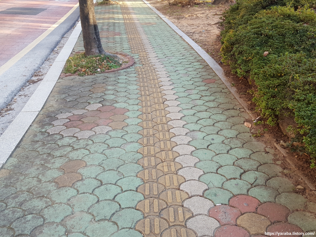 독특한 모양의 보도블록. 바다를 끼고 있는 도시인만큼 물고기 비늘 모양으로 보도블록을 제작해서 깔았나 보다. 시멘트 블록이지만 괜찮은 아이디어다.