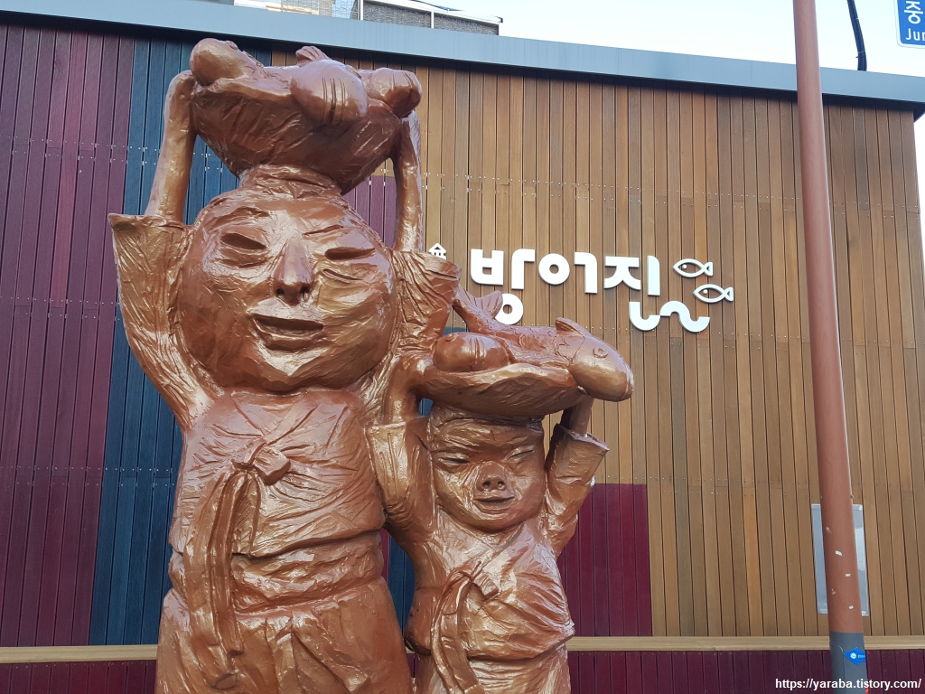 방어진 항구에 들어가는 모서리에서 만난 증곡 천재동 인간문화재의 탈과 토우. 탈은 선생이 동래 야류라는 부산 동래에서 내러 오던 탈 놀음에 사용하는 탈들을 만든 것이고, 토우는 선생이 1990년대에 제작한 "가자 가자 장에 가자 개기 사러 장에 가자"라는 작은 토우 작품을 청동으로 복원한 것이라 한다. 울산 방어진 출신의 그가 십 대의 나이에 동네 친구들과 "부대장"이란 창작 연극 무대를 올렸다는 이야기. 일본 유학시절 미술과 연극 기초를 배웠고 국내로 돌아와서는 동시, 그림, 탈, 토우, 연극 대본, 연출 등에서 많은 작품을 남겼다는 이야기. 야구 선수, 공무원, 교사, 예술인까지 다양한 색깔의 삶을 살았던 그분의 인생 역정이 매력적이었다. 일장기를 올리고 예를 표한 후 예배를 드리라는 당국의 지시를 거부한 것으로 폐쇄되었던 지금의 방어진 제일 교회에서 일본 승려의 주례로 독립투사의 딸과 결혼식을 올렸다는 이야기는 소설의 한 장면과 같았다. 결혼식을 하려면 신사에서만 가능했던 당시의 상황에서 선생이 결혼하려고 했던 신부는 일본에서 천황을 암살하려다가 체포되어 고문으로 사망한 울산 동구 출신의 서진문 의사였다. 이렇게 방어진항 입구에서 귀중한 인물을 만난다.