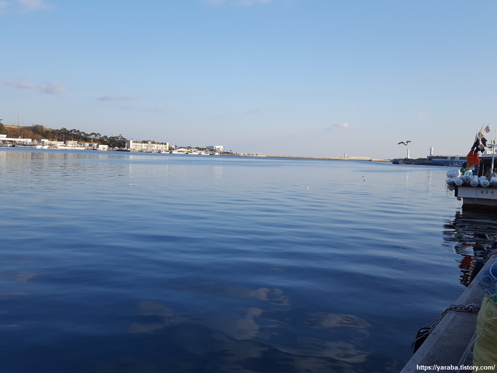 방어진 항구의 모습. 오후 시간이라 위판장은 한적하고 항구도 조용하다.