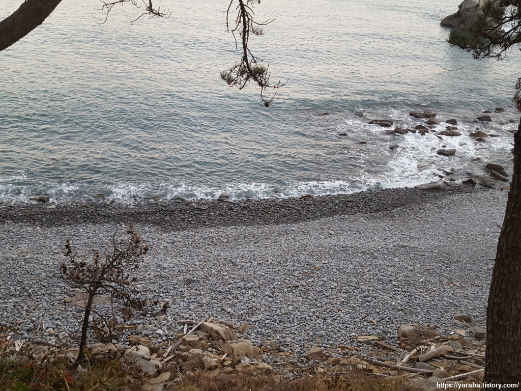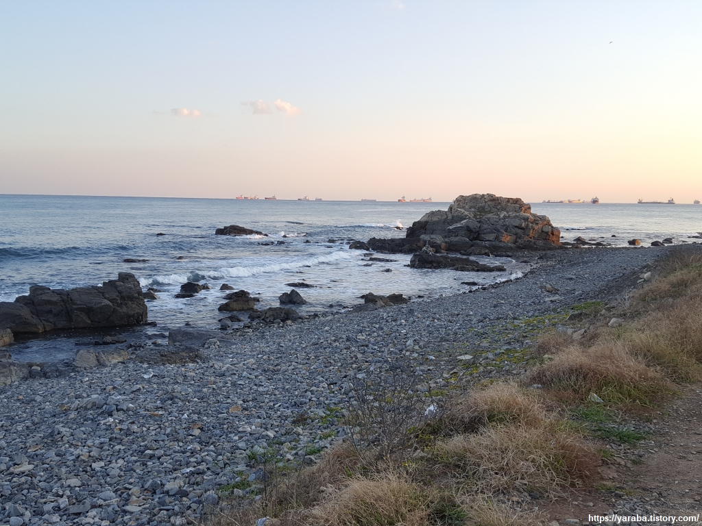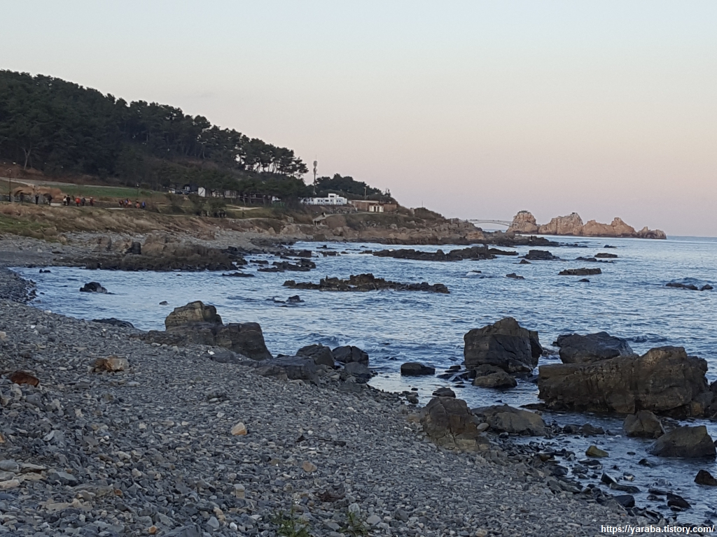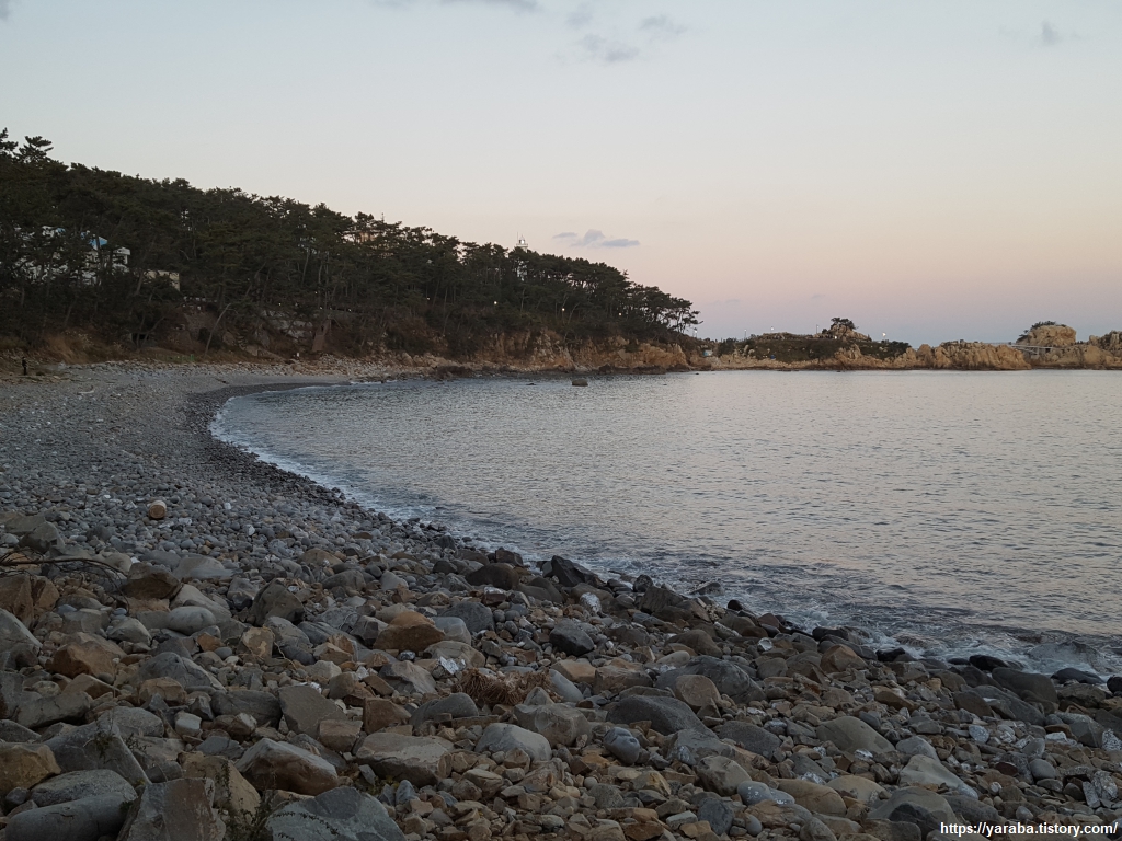대왕암 공원 캠핑장을 지나면 다시 해안길로 접어든다. 몽돌 해안이다.
