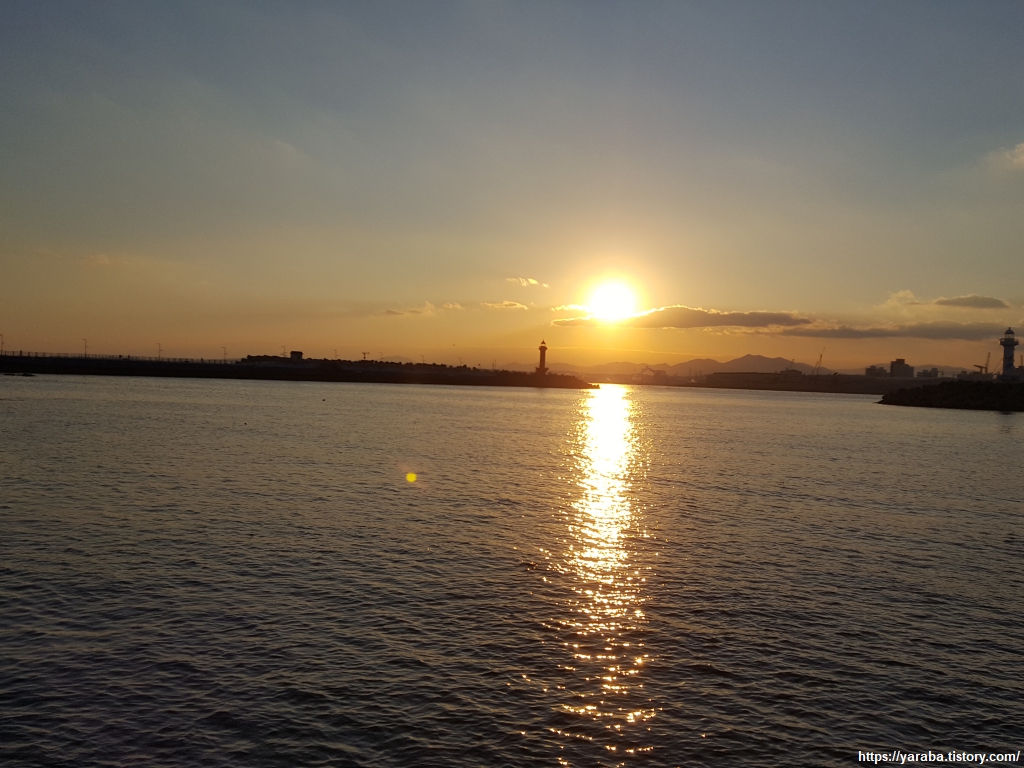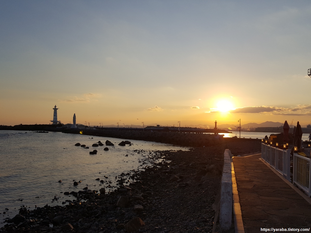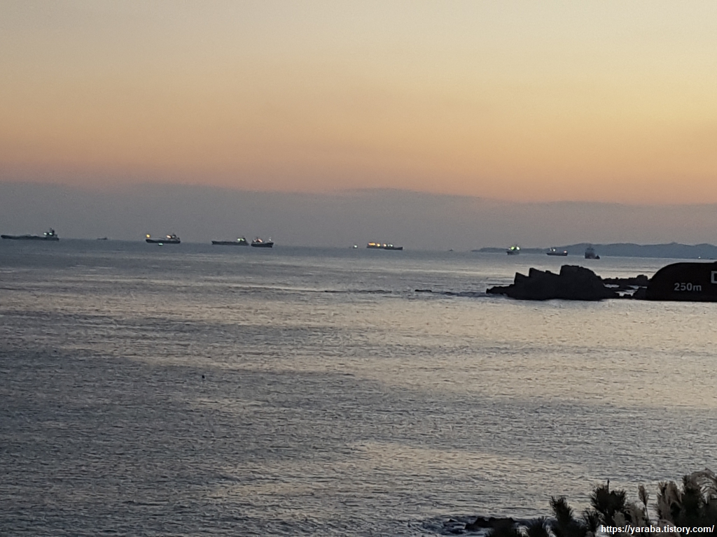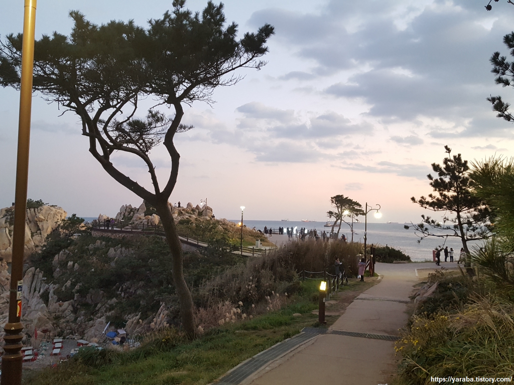 대왕암 공원 해맞이 광장. 해가 수평선 아래로 내려간 시간인데도 사람들이 많다. 근처로는 해녀들의 좌판도 있는데 늦은 시간이라 이곳도 문을 닫았다.