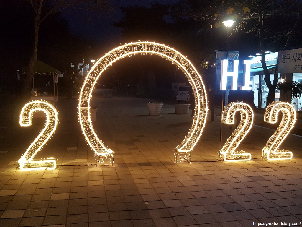 공원 입구에 세워진 2022년 조명으로 미리 새해맞이를 해본다.