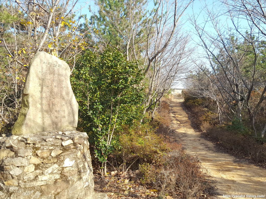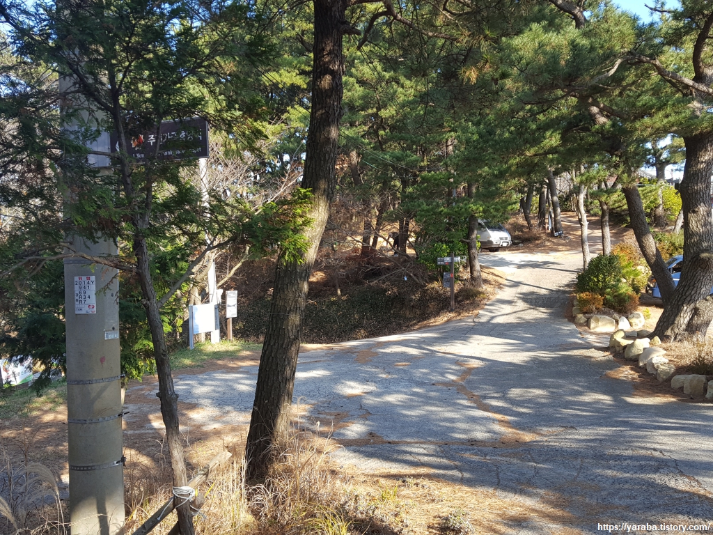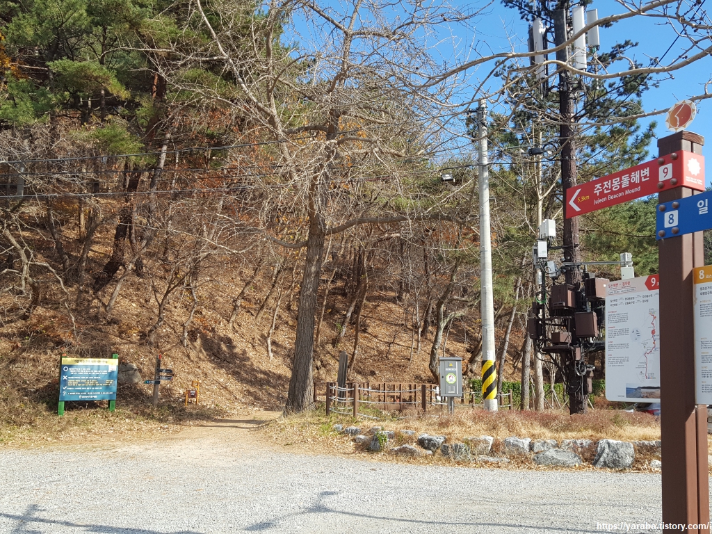 주전 봉수대 인근에 봉호사라는 사찰이 있는데 해파랑길은 좌회전하여 주전 가족 휴양지 표지판을 따라간다.
