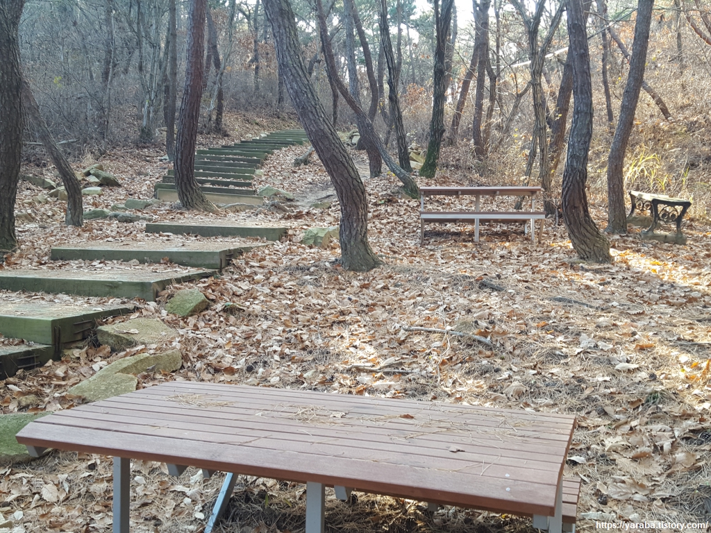 내려가는 길에 벤치에서 잠시 쉬어간다.