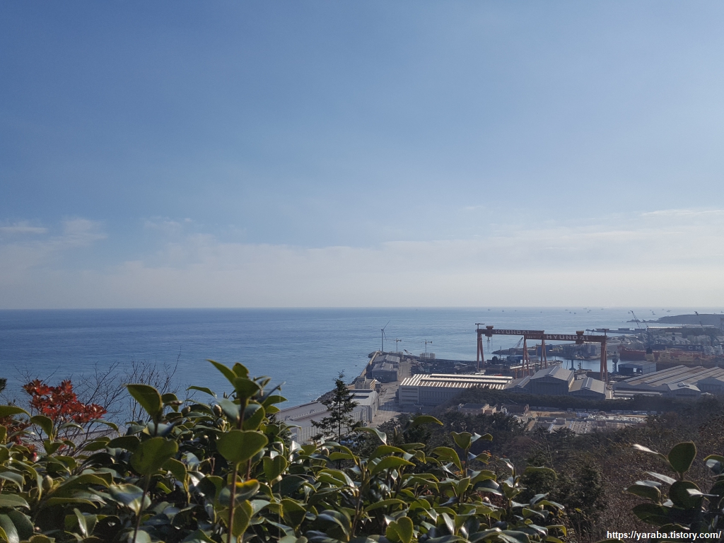 산 아래로 현대중공업 공장이 보인다. 울산 공단을 보는 뷰는 봉대산이 마지막일 것 같다.