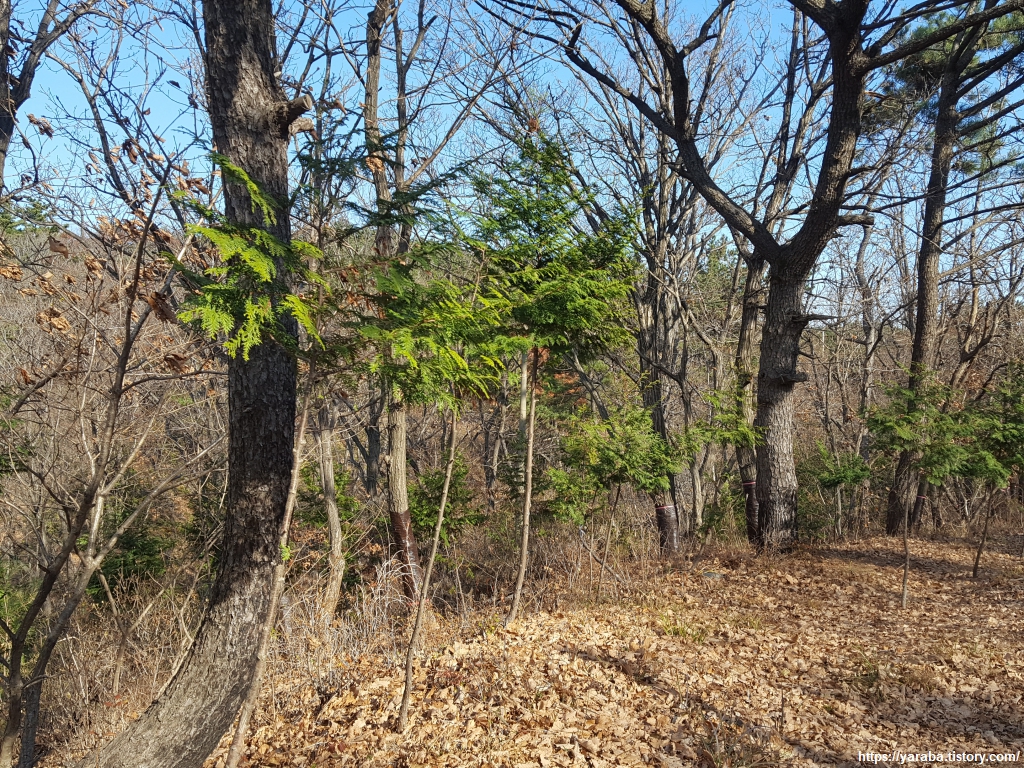 심은지 얼마되지 않은 것으로 보이는 어린 편백나무들. 울산 동구에서는 지자체와 단체들을 중심으로 10여 년 전부터 꾸준히 산에 편백 나무 심기를 진행해 오고 있는데 그 결과인 듯하다. 이렇게 나무가 심어지고 잘 클 수만 있다면 이 숲의 결실은 다음 세대가 볼 것이다.