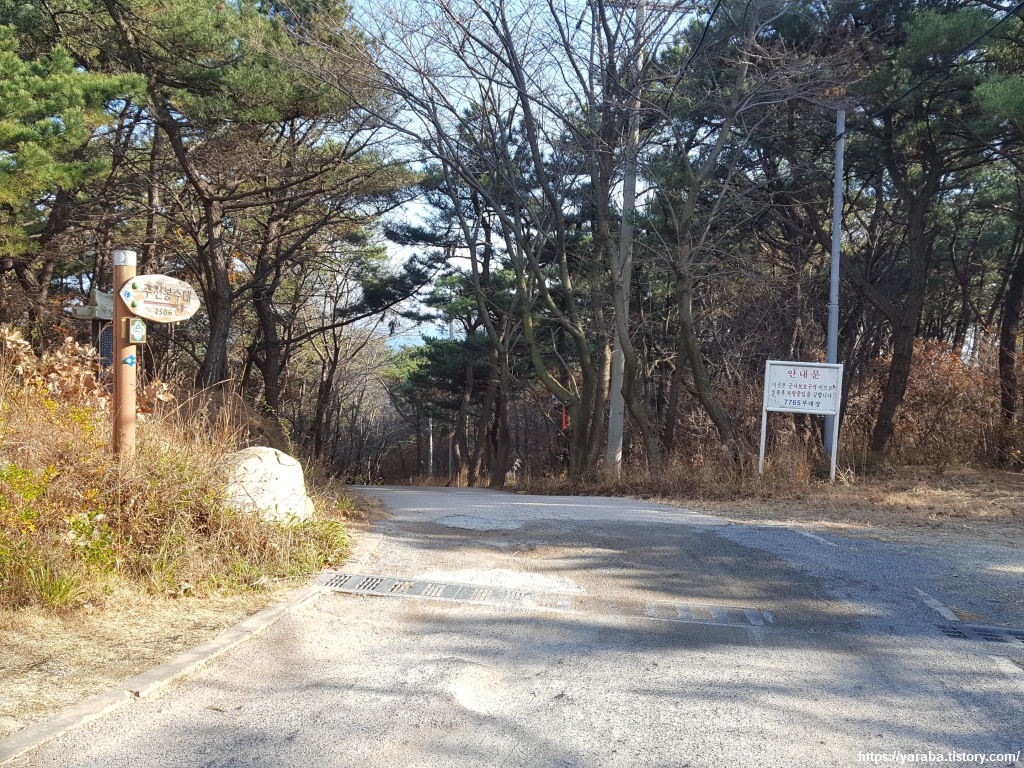 남목 생활 공원 끝에 있는 등산로 입구를 통해 봉대산을 오르기 시작한다. 주전 몽돌 해변까지 5.3Km를 가면 오늘 걸어야 하는 거리의 절반 정도에 이른다.