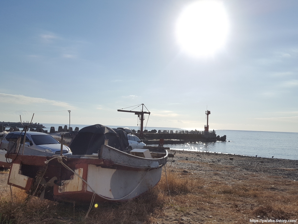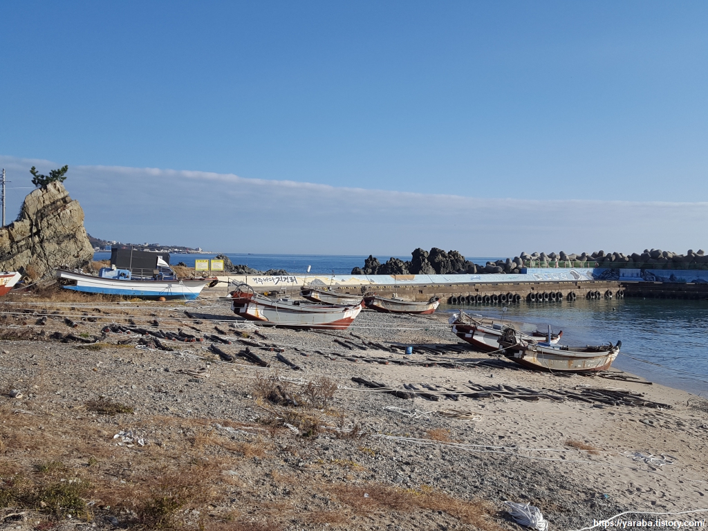 신명 해변을 지나면 신명 방파제로 향한다. 겨울 아침을 녹이는 하얀 햇살, 오랜 세월 묵묵히 자리를 지켜온 방파제, 반짝이는 물결, 잠시 뭍으로 올라온 고깃배가 하나의 작품이다.