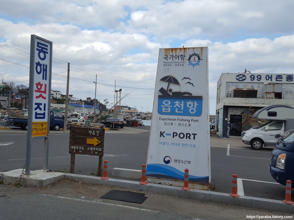 국가어항으로 관리되고 있는 읍천항. 경주시의 국가 어항은 이곳 읍천항과 11코스의 종점인 감포항 정도이다. 읍천리에는 한수원 사택도 있고 지근거리에 월성 원자력 발전소도 있어서 원자력 발전소와 함께 성장한다고 해도 과언이 아니다.