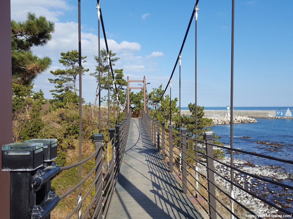 해변으로 지어놓은 펜션들 앞을 지나서 읍천항으로 향한다. 읍천항 직전에는 작은 출렁다리도 만들어져 있어 걷기 좋은 길이다.