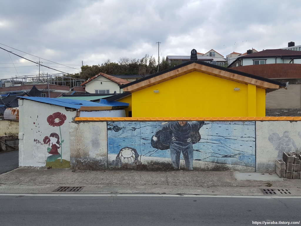 읍천항 하면 따라오는 것은 벽화마을이란 이름으로 이것 또한 월성 원자력 발전소의 벽화 공모전이 계기가 되었다. 2010년부터 2014년까지 5회에 걸쳐 벽화 공모전을 열면서 전국 대학생과 작가들의 작품을 추가하고 갱신했다고 한다. 걸으면서 감상할 수 있는 갤러리다.