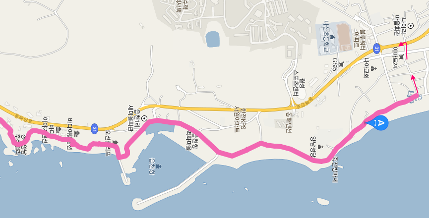 멀리 읍천항의 방파제가 눈에 들어온다. 이때까지만 해도 방파제 안으로 요트들을 많이 정박해 놓았구나 하는 착각을 했다. 얼마 가지 않아 그것이 착각이었다는 것에 탄성을 질렀지만......