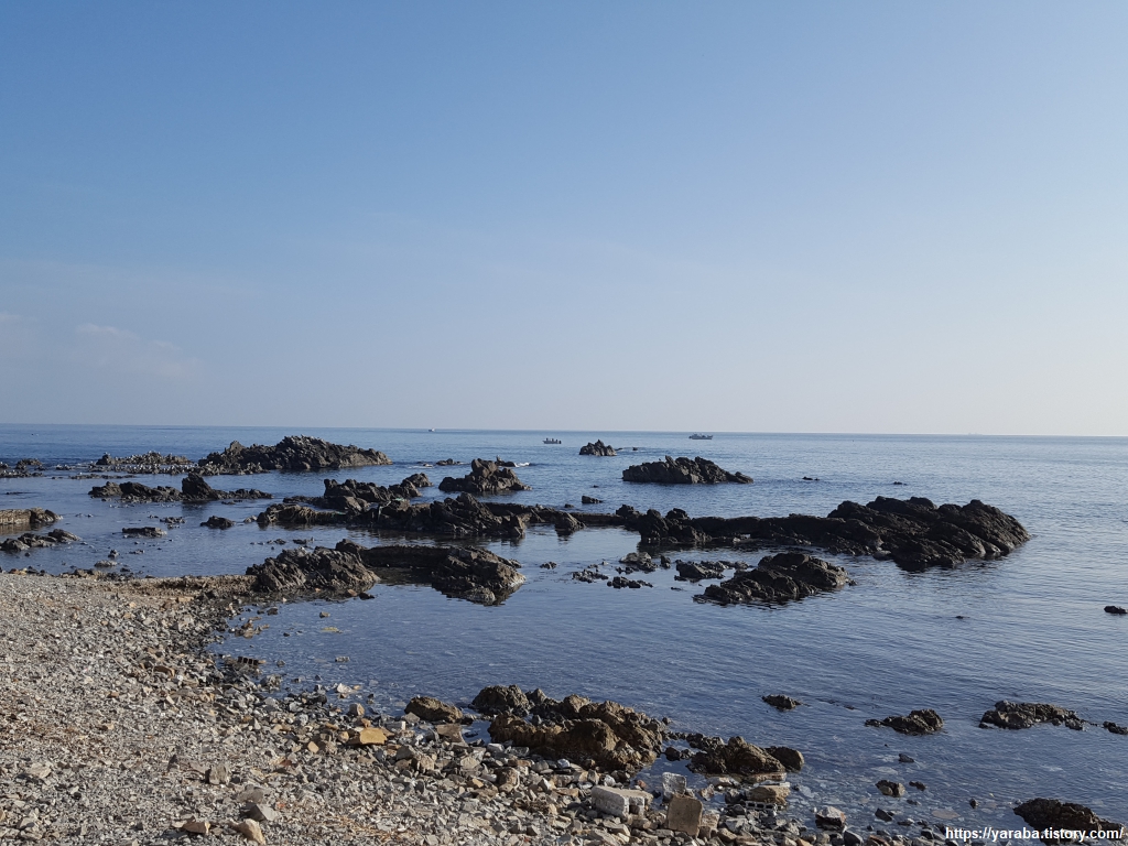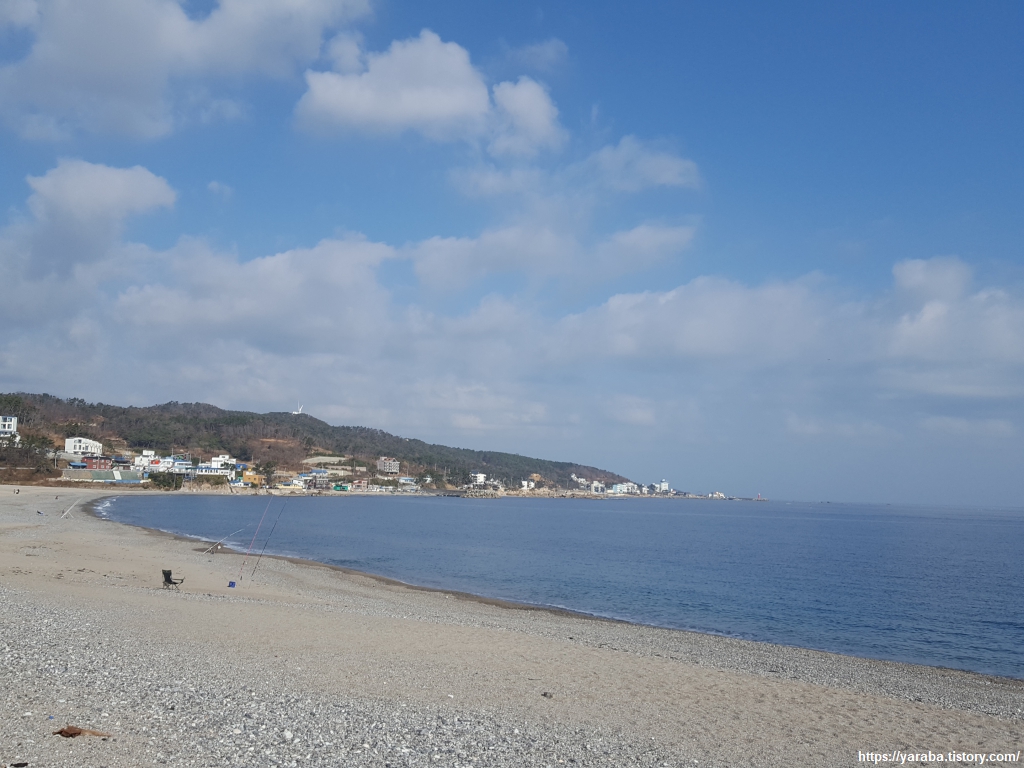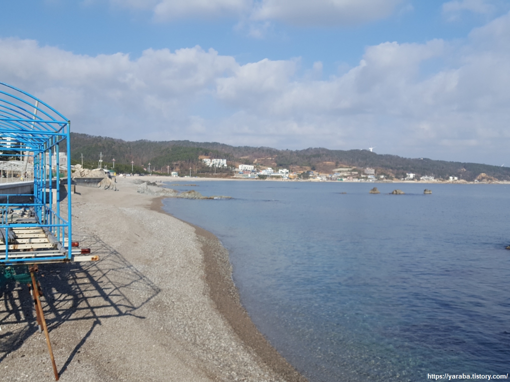 바다가 잔잔해서 그런가? 아니면 몽돌 바닥이어서 그럴까? 척사항 근처 해변의 물빛이 너무도 맑아 보인다.