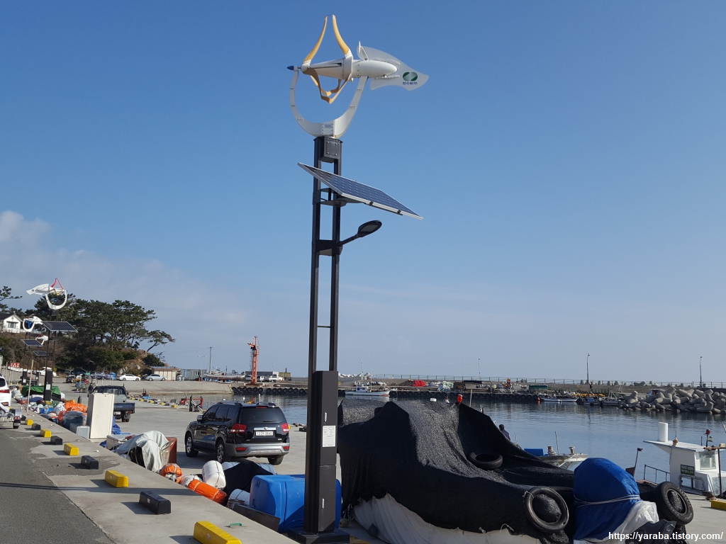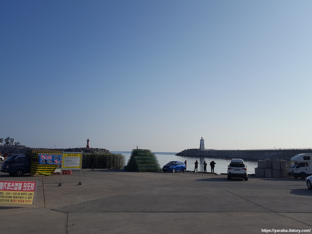 척사 방파제와 척사항. 척사항에도 한수원에서 제공한 하이브리드 발전 기반의 가로등이 설치되어 있다. 의도는 좋은데 장기간 효용성 있는 기반 시설의 역할을 할 수 있으면 좋겠다.