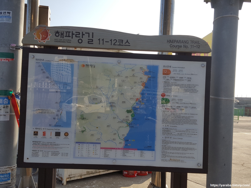해파랑길 11, 12 코스 안내판 옆에 있는 스탬프 함에서 도장을 찍고 길을 나선다.