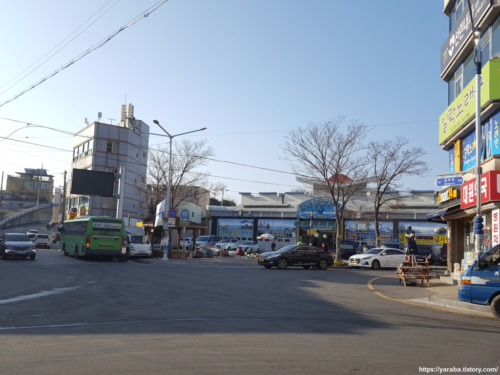 해파랑길은 항구 끝으로 가면 안 되고 수협 활어 직판장 좌측의 마을길로 가야 한다.