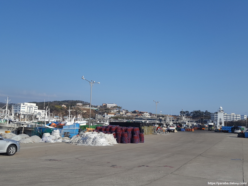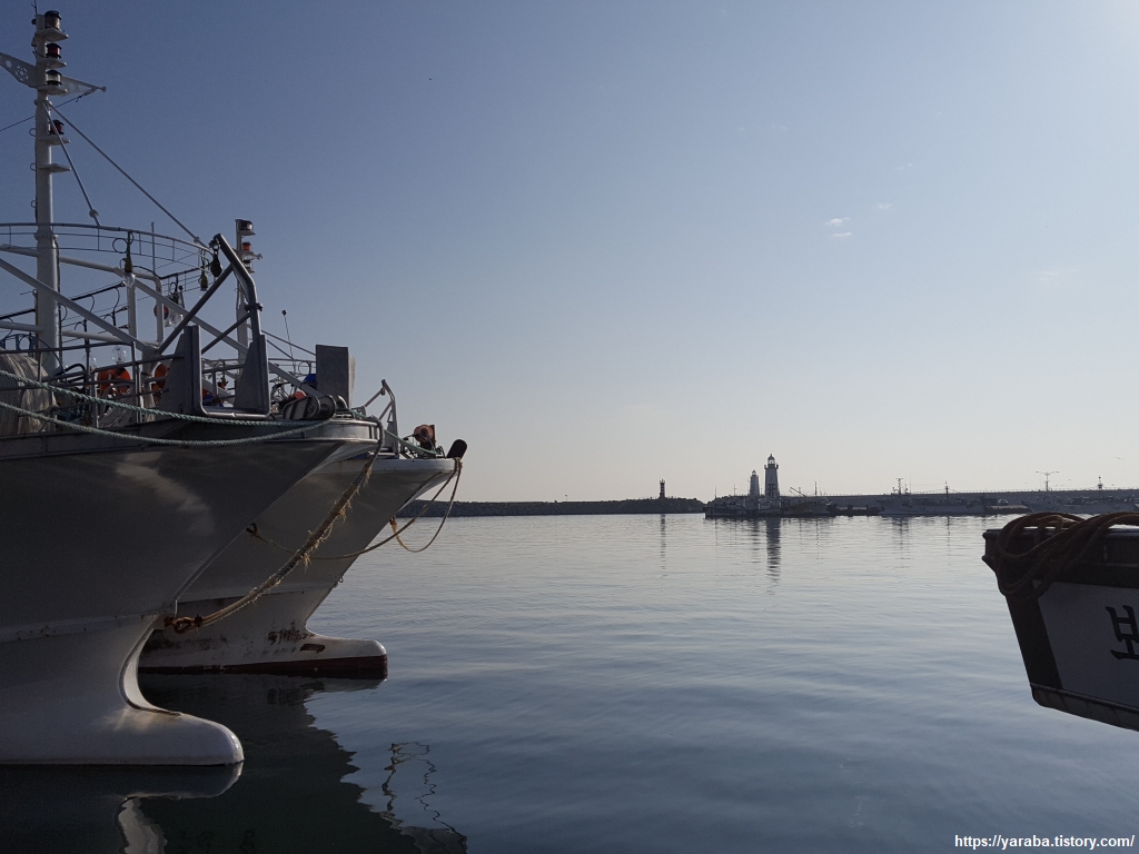 큰 어항답게 정박해 있는 큰 배들이 많았다. 아침 항구의 고요함과 주말 장사를 준비하는 횟집들의 분주함이 공존하는 시간이다.