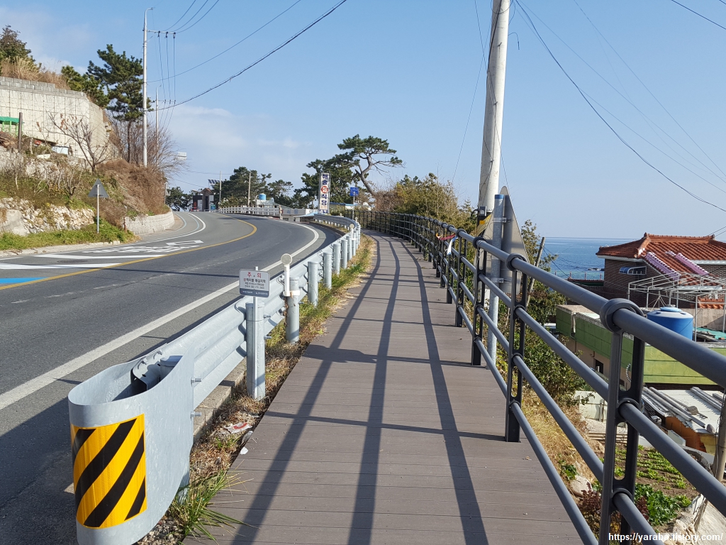 작은 방파제가 있는 이곳은 모곡 마을로 마을 중간에서 31번 국도로 올라가서 도로변 데크 길을 걷는다.