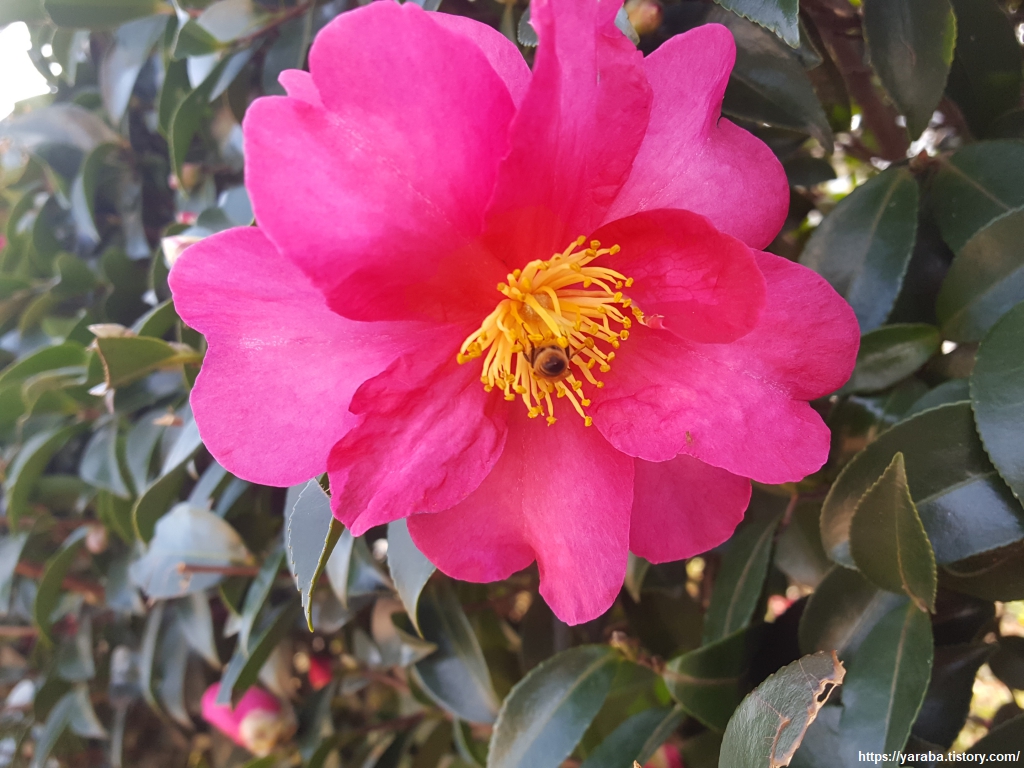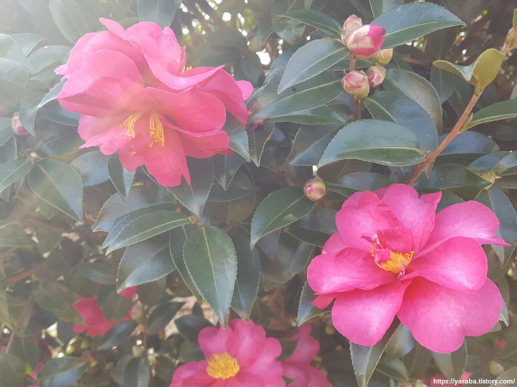 양포항 공원에서 존재감을 뽐내고 있는 동백꽃. 겨울 여행에서 그나마 생기를 느끼게 해주는 꽃이다.