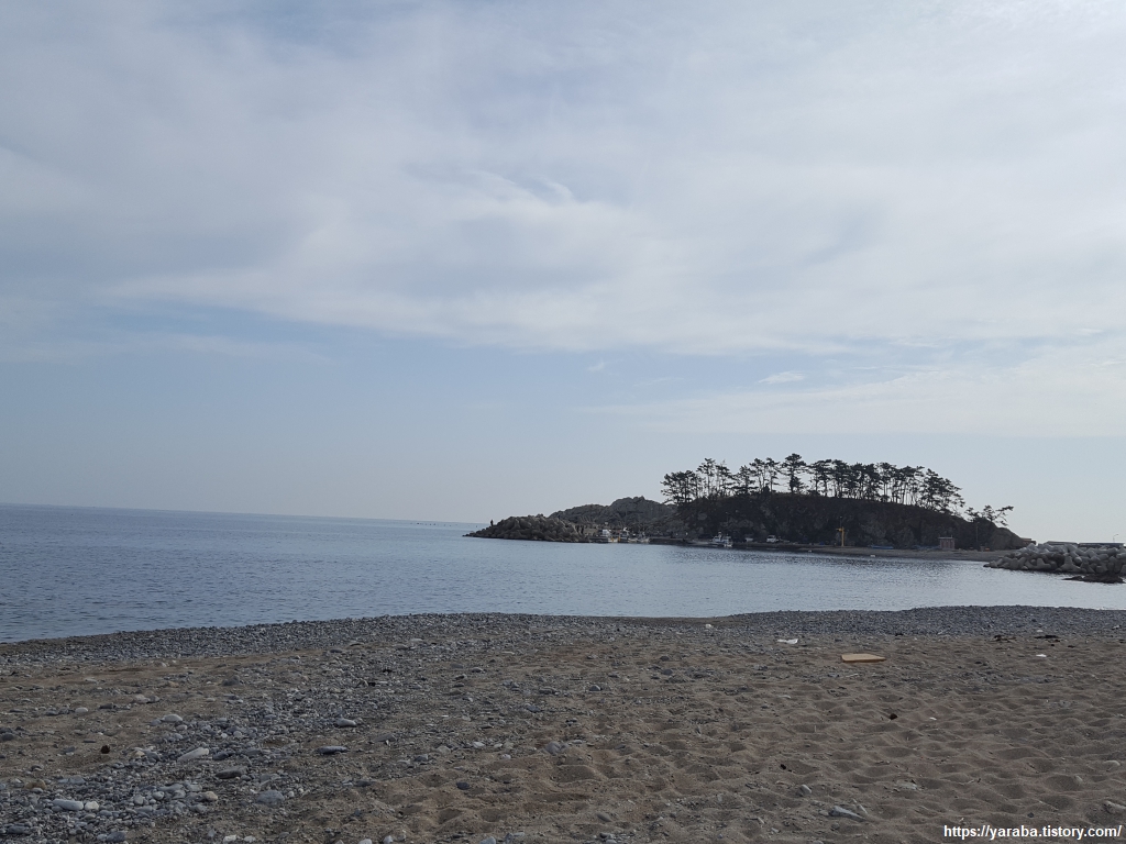 뒤돌아본 소봉대와 계원리 해변의 모습. 고즈넉하니 아름답다.