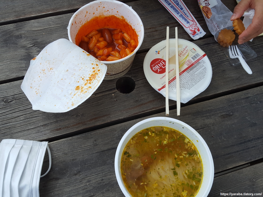 오늘 점심은 편의점 간편식으로 해결했다. 옆지기가 좋아하는 떡볶이와 베트남 쌀국수, 밥 한 공기로 넉넉한 식사를 했다. 도로변이라 오고 가는 사람들의 시선이 있기는 했지만, 그러면 좀 어떠랴! 음식을 먹으며 오며 가는 사람들을 구경하는 것도 재미가 있었다. 그러다, 발견한 한 광경. 커다란 오토바이 한 대가 음식점 앞에 서더니 시동을 끄고 두 사람이 오토바이에서 내린다. 그리고는 같이 오토바이를 탔던 커플은 헬멧과 외투를 벗어 오토바이에 걸치기 시작했다. 아마도 편한 복장으로 음식을 먹기 위한 준비가 아니겠나 싶었다. 그런데, 그 두 사람은 희끗희끗한 백발의 노인분들이었던 것이다. 와우! 우리가 저분들의 나이에는 과연 어떤 모습일까 상상해보는 시간이었다.
