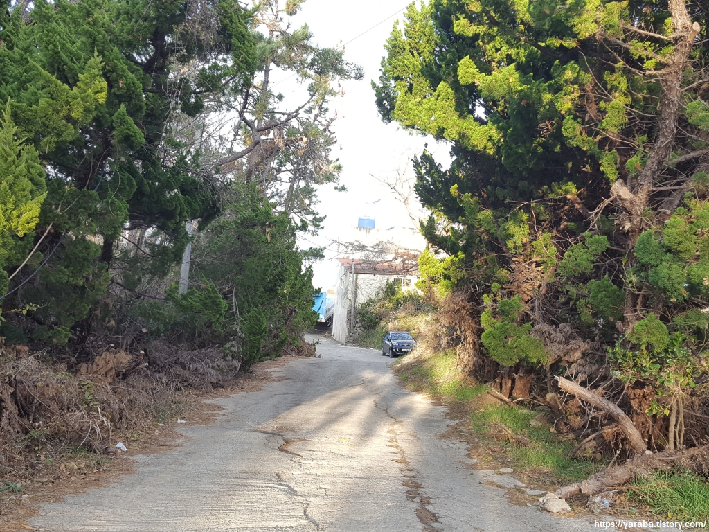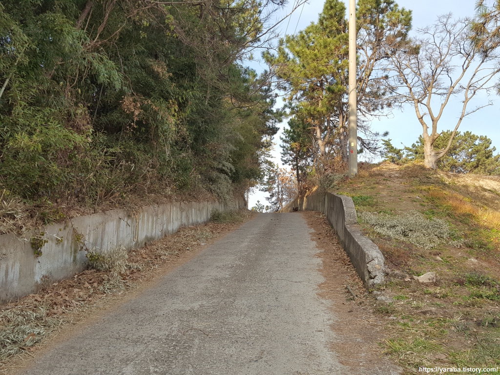 신창리 어항을 떠나면 끝쪽에 있는 오르막을 통해서 고개를 넘어간다. 고개를 넘어가면 영암리에 이른다.