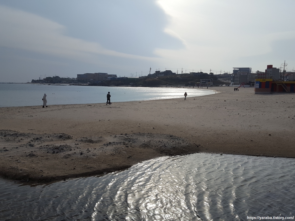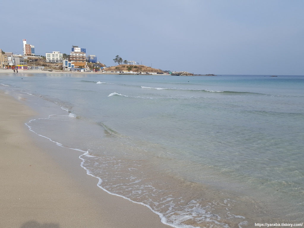 대형 해수욕장은 아니지만, 고운 모래와 맑은 물로 아이들과 함께 즐기기에는 딱이다 싶었다. 해변에 남겨진 우리 둘의 발자국은 파도가 곧 지워 줄 것이다.