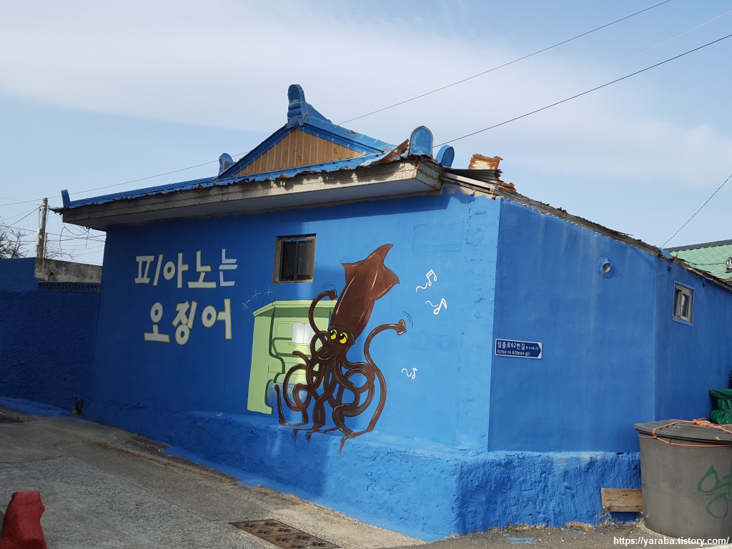 추억을 떠올리게 하는 노래가 마을 벽화로 그려져 있다.