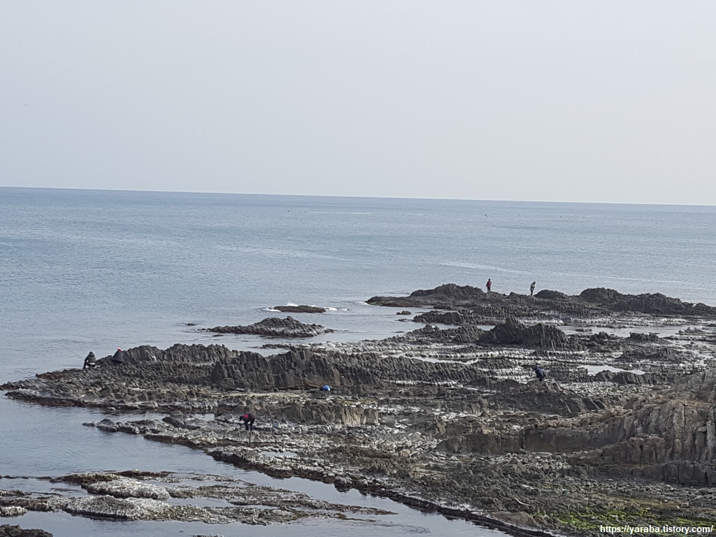 구룡포 주상 절리는 나름 육각기둥의 독특한 지형을 가지고 있지만 부채꼴 문양의 경주 양남 주상절리와 무슨 차이가 있을까? 이곳은 낚시꾼과 채집꾼의 앞마당이 되었다.