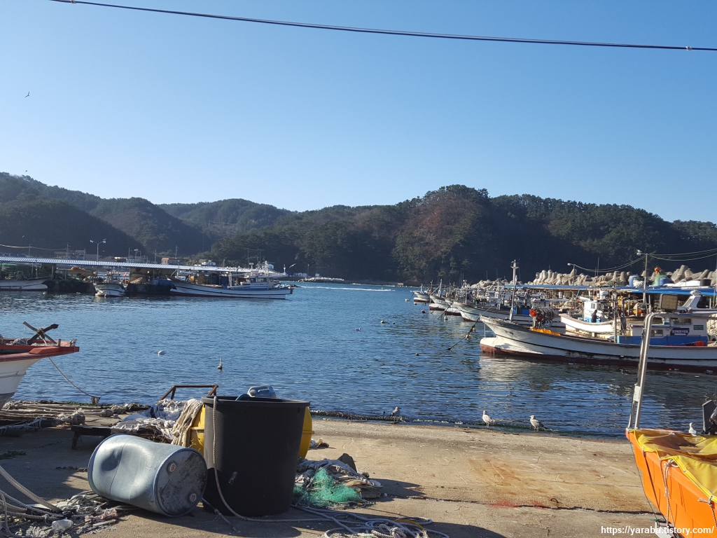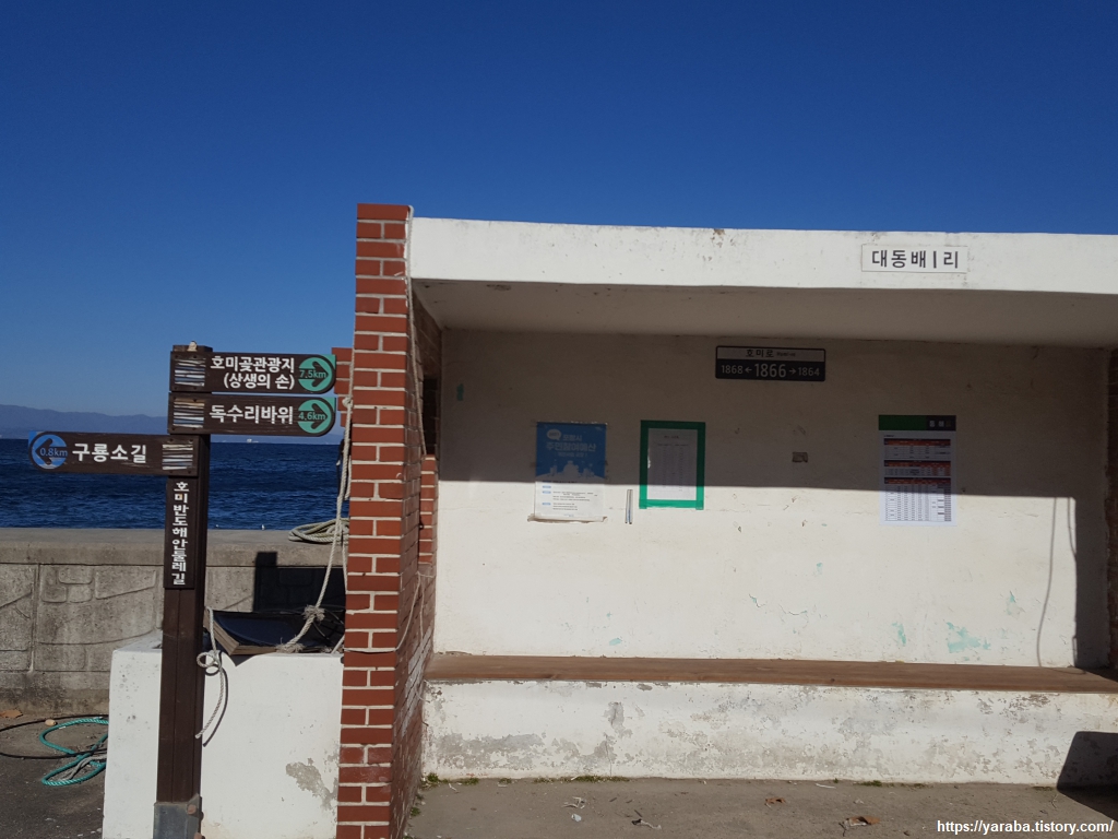 산길로 돌아오는 해파랑길도 우리가 걸었던 929번 호미로도 대동배 1리 포구에서 한 길로 만난다. 대동배 1리 포구에는 크기가 제법 큰 배들이 나란히 줄지어 있다.