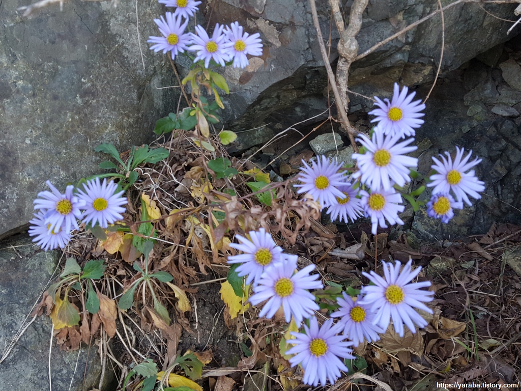 그 몽돌 해안에서 만난 바위틈 해국이 한 모금 여유를 선사한다.