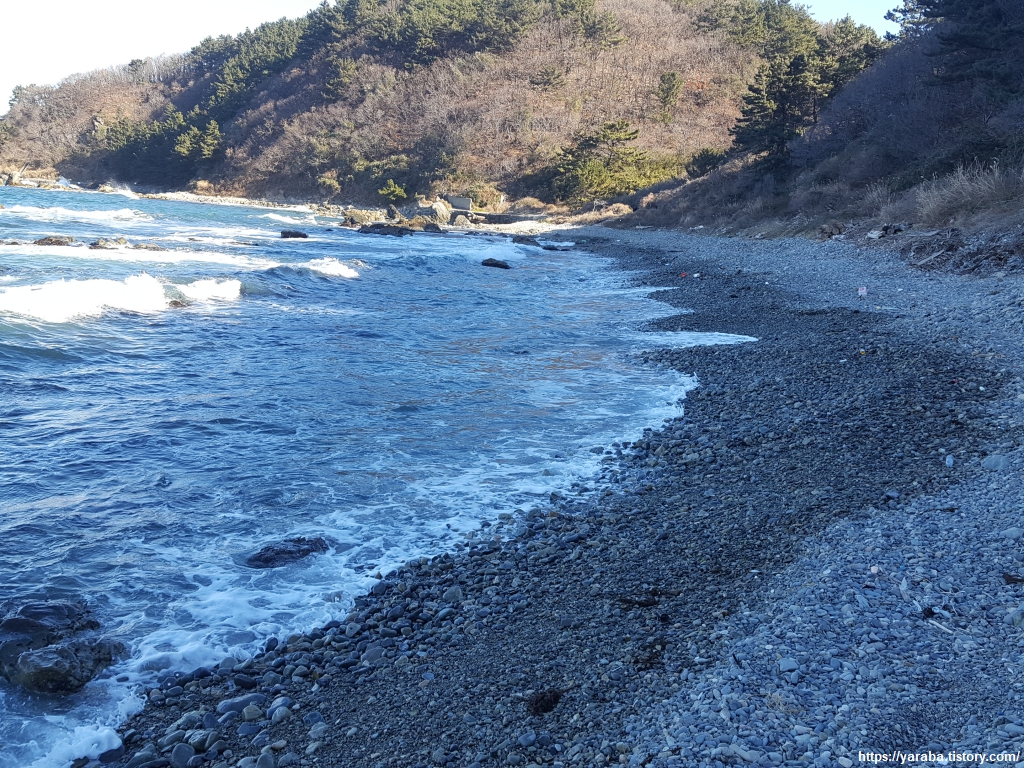 한동안 자갈길을 걸어야 하지만 이 길이 지루하지 않은 이유는 몽돌을 굴리는 파도 소리다.