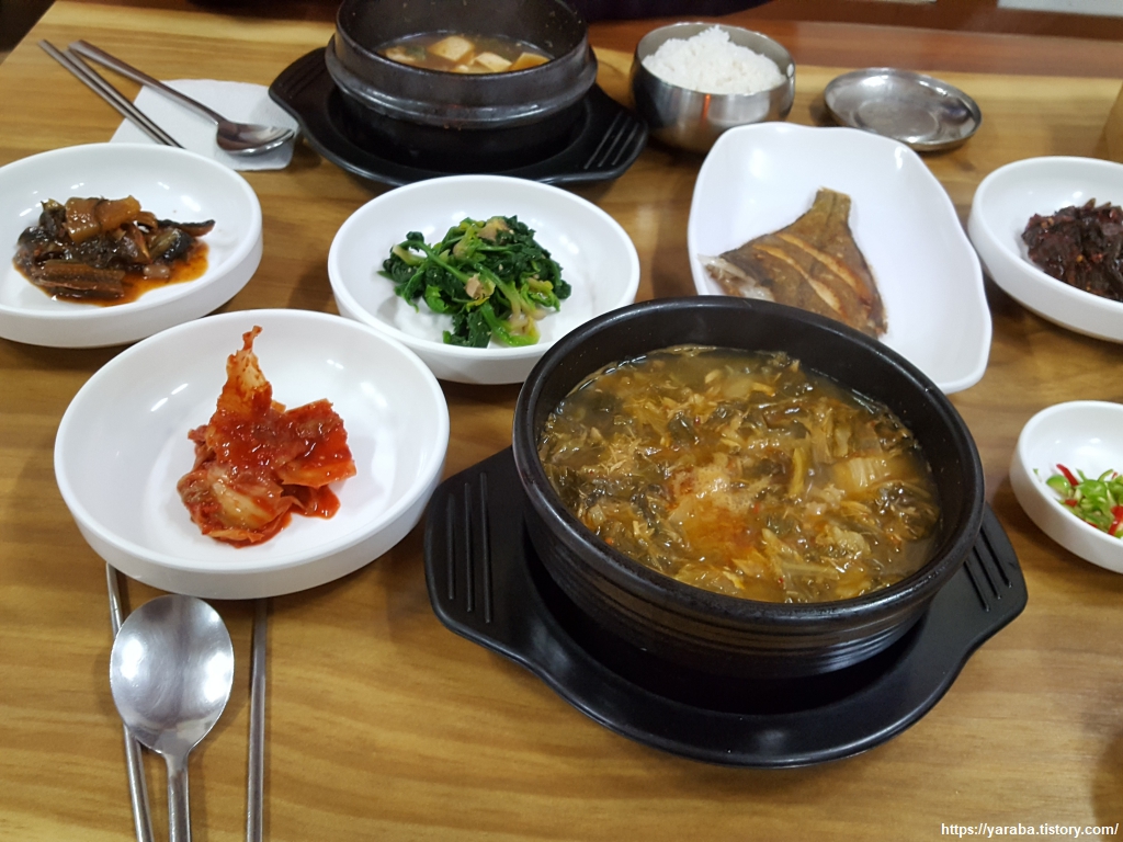 포항역으로 이동하기 전에 가는 길에 만난 백반집에서 고등어 추어탕과 생선구이로 이른 저녁을 넉넉하게 챙겨 먹었다. 필자는 처음 먹어보는 것이었는데 나름 먹을만했다. 고등어 살을 가지고 얼큰하게 끓이는데 추어탕에 넣는 산초 가루를 추가하면 비린내도 잡을 수 있다고 한다. 고등어 통조림으로 끓이는 레시피도 있고, 부산 한 음식점에서는 해장국으로 4천에 파는 서민적인 음식이다. 이곳에서도 고등어 추어탕의 가격은 저렴했다.