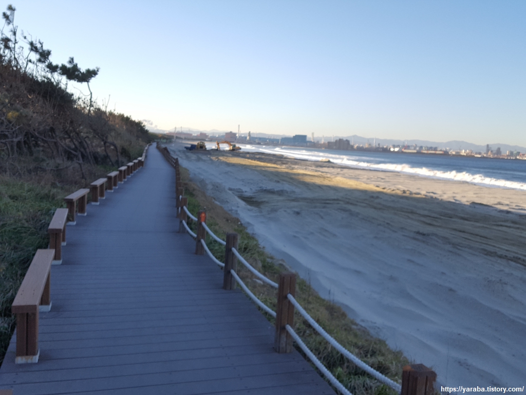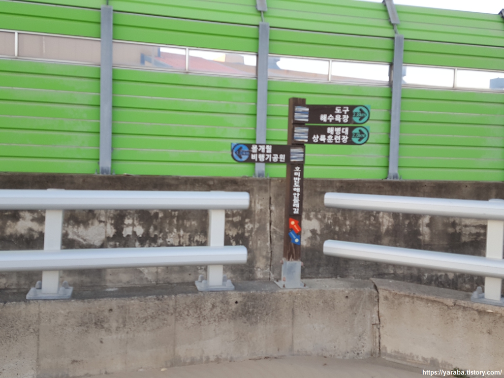 해병대 상륙훈련장 방면으로 가는 산책로는 늦은 시간이나 훈련이 있을 경우에는 폐쇄된다. 이런 경우에는 시내 길을 통해 돌아가야 하는데 다행히 우리가 지나가는 시간에는 훈련이 없었다. 커다란 장갑차가 오가는 훈련이 있으면 위험할 텐데 훈련이 없을 때 이렇게 개방해 주는 것만도 고마울 뿐이다. 군 시절 옛 추억을 떠올리면서 걸어본다.