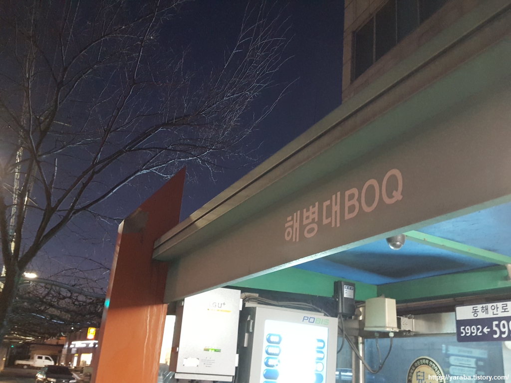 "해병대 BOQ" 버스 정류장에서 9000번 급행 버스를 타면 포항역까지 바로 갈 수 있다. 도구 해수욕장에서 걷기를 멈추고 청포도 테마길을 걷지 않았다면 정말 후회할 뻔했다. 큰길 도로변을 걷는 길이지만 정말 좋은 길이었다.