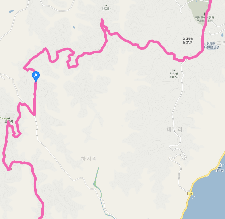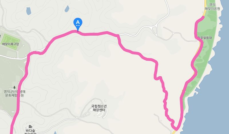 임도 중간에서 산길을 내려가 20번 지방도를 따라 올라가면 오늘의 최종 목적지인 영덕 해맞이 공원에 도착한다.