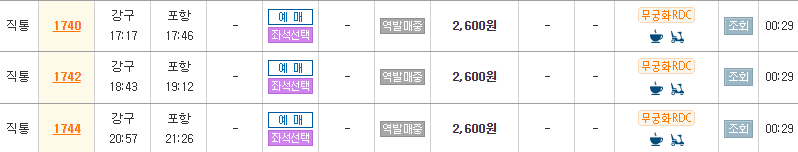 강구역에서는 포항역까지 무궁화 열차로 이동한다.