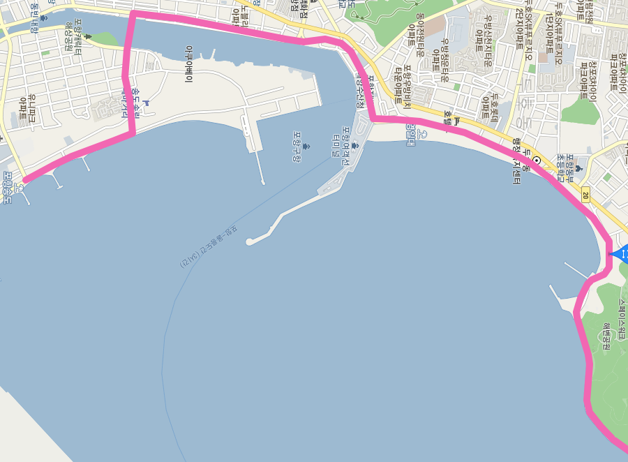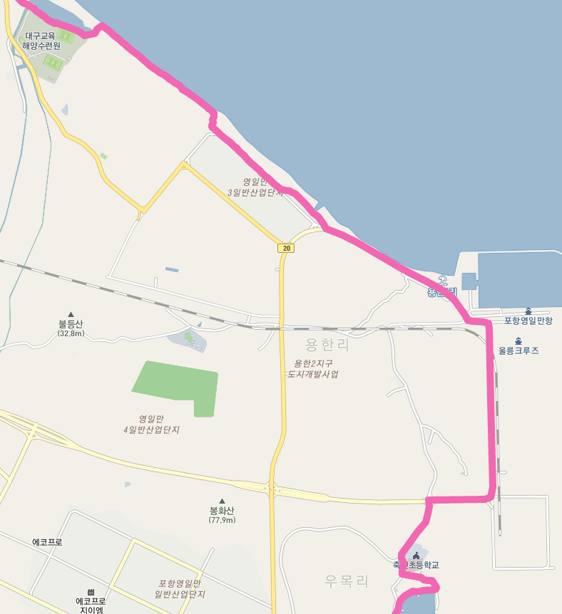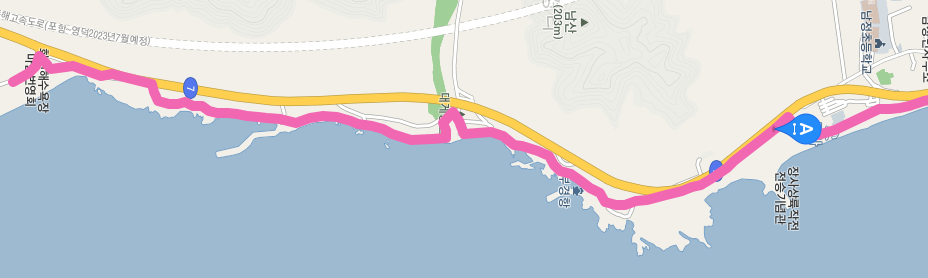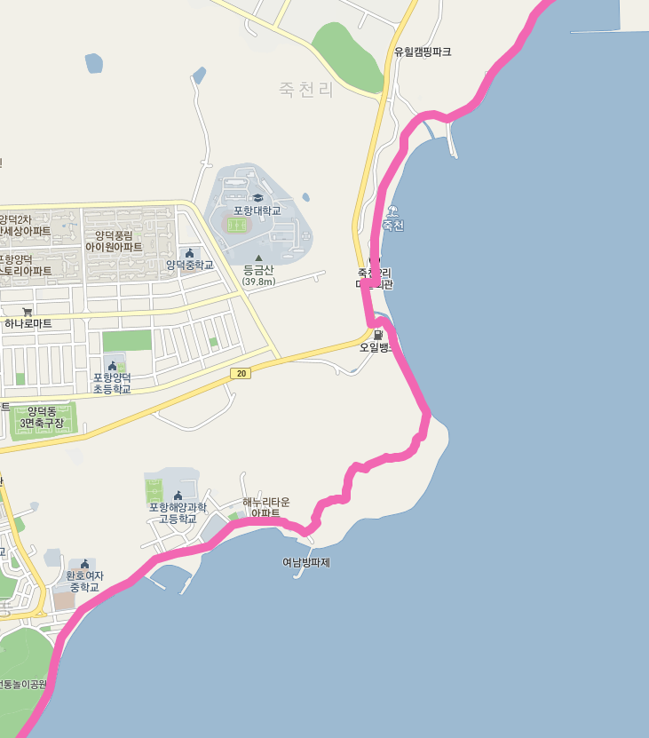 환호동 공원 주위를 돌면 여남 방파제와 죽천 해수욕장을 지나 영일만항으로 진입한다.