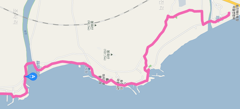 장사 해수욕장과 부흥리 해수욕장을 지나면 원척리에서 7번 국도를 따라서 걷는다. 큰길의 도로변이기는 하지만 잘 정비된 산책길을 걷는다.